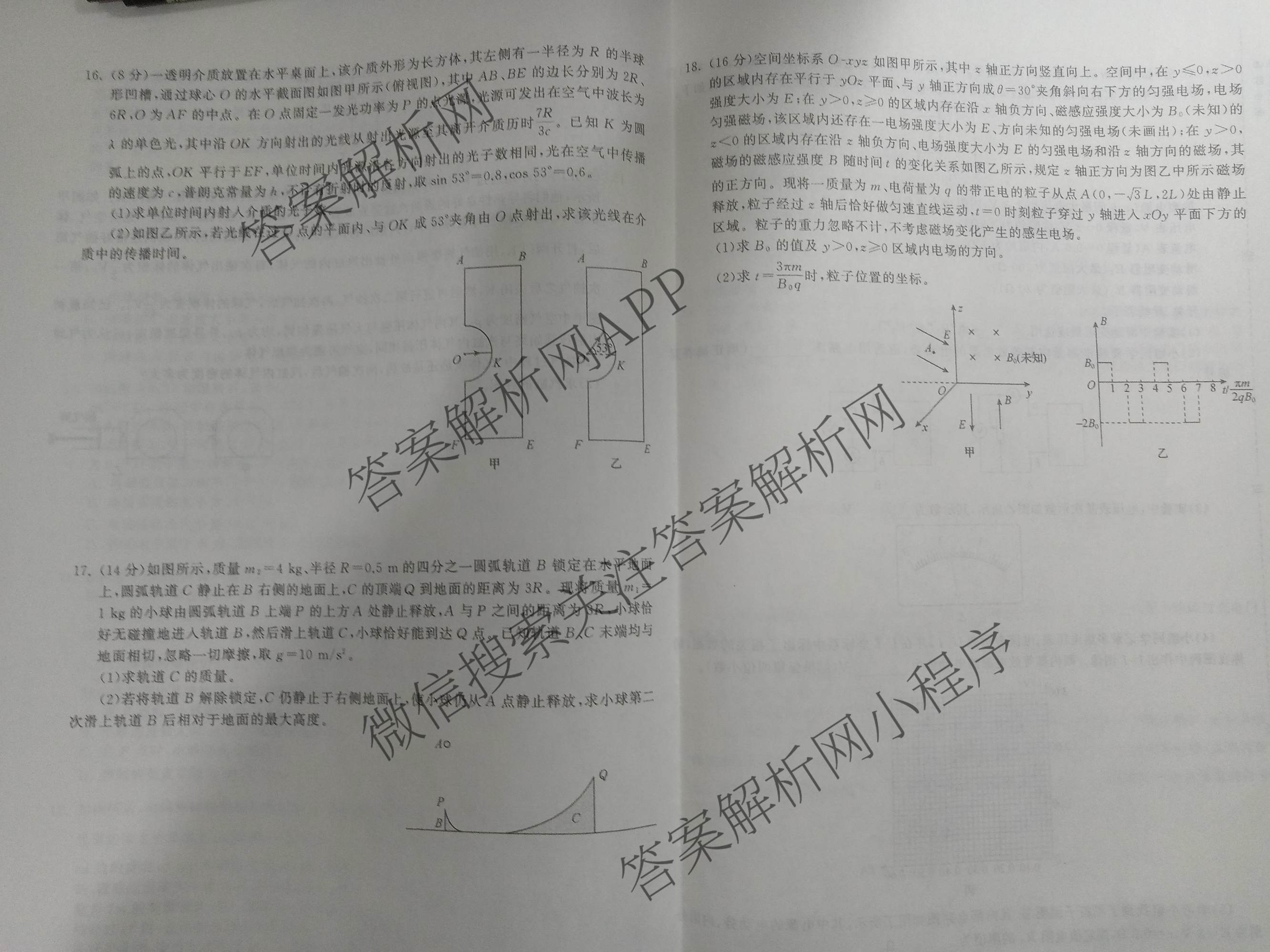 - [高三]天舟高考[衡中同卷]2026年普通高中学业水平选择性考试模拟调研卷(一)1物理(山东版)答案