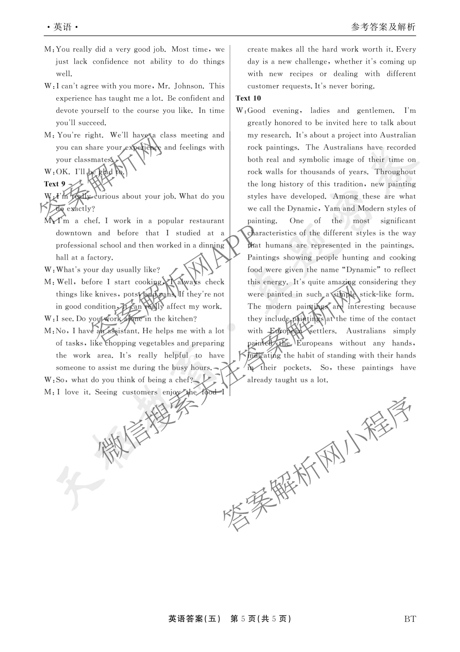 - 2025-2026[高三]衡水(真题密卷)·学年度综合能力调研检测(五)5英语(BT)答案