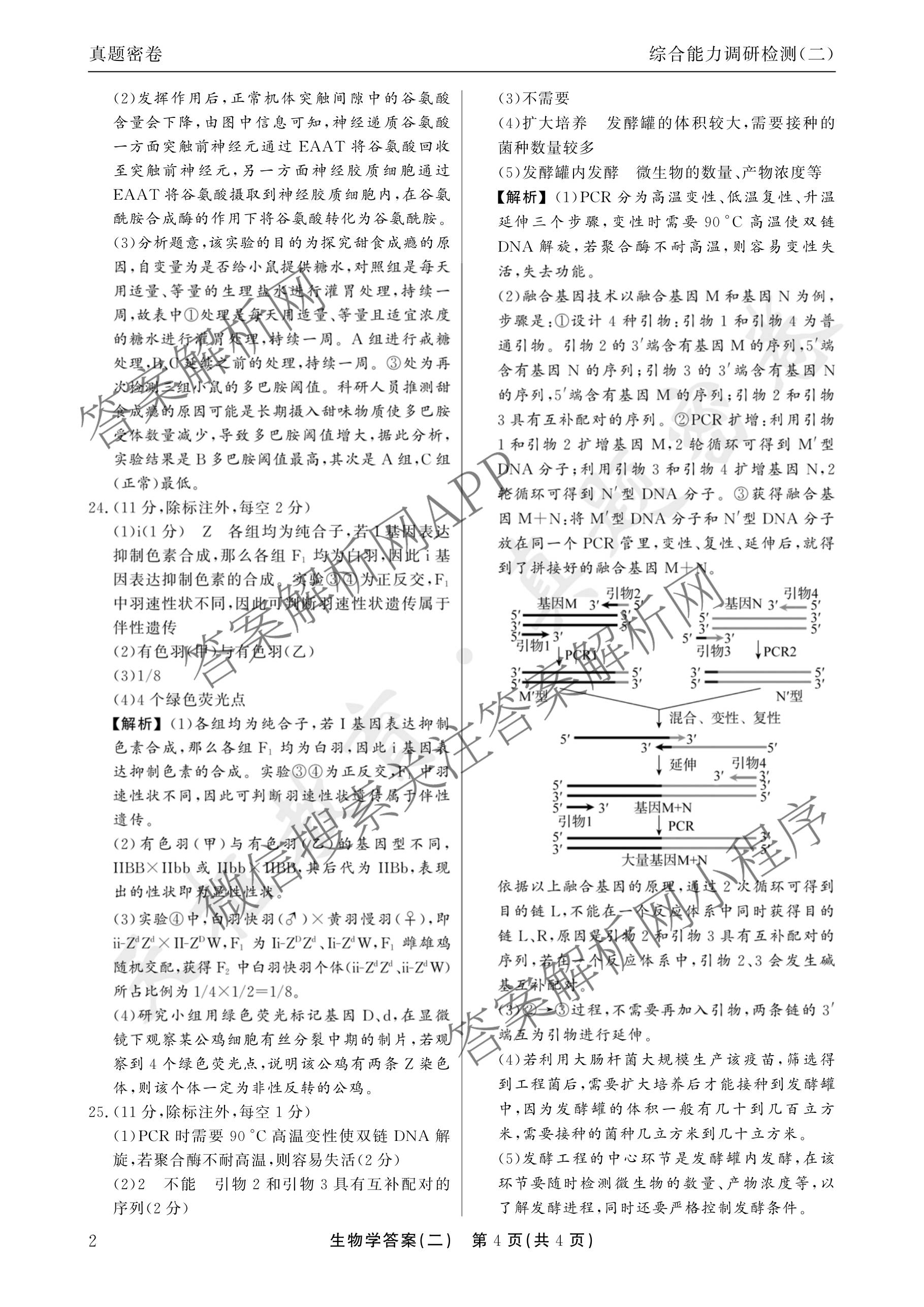 - 2025-2026高三衡水[真题密卷]学年度综合能力调研检测(二)2生物(2)答案