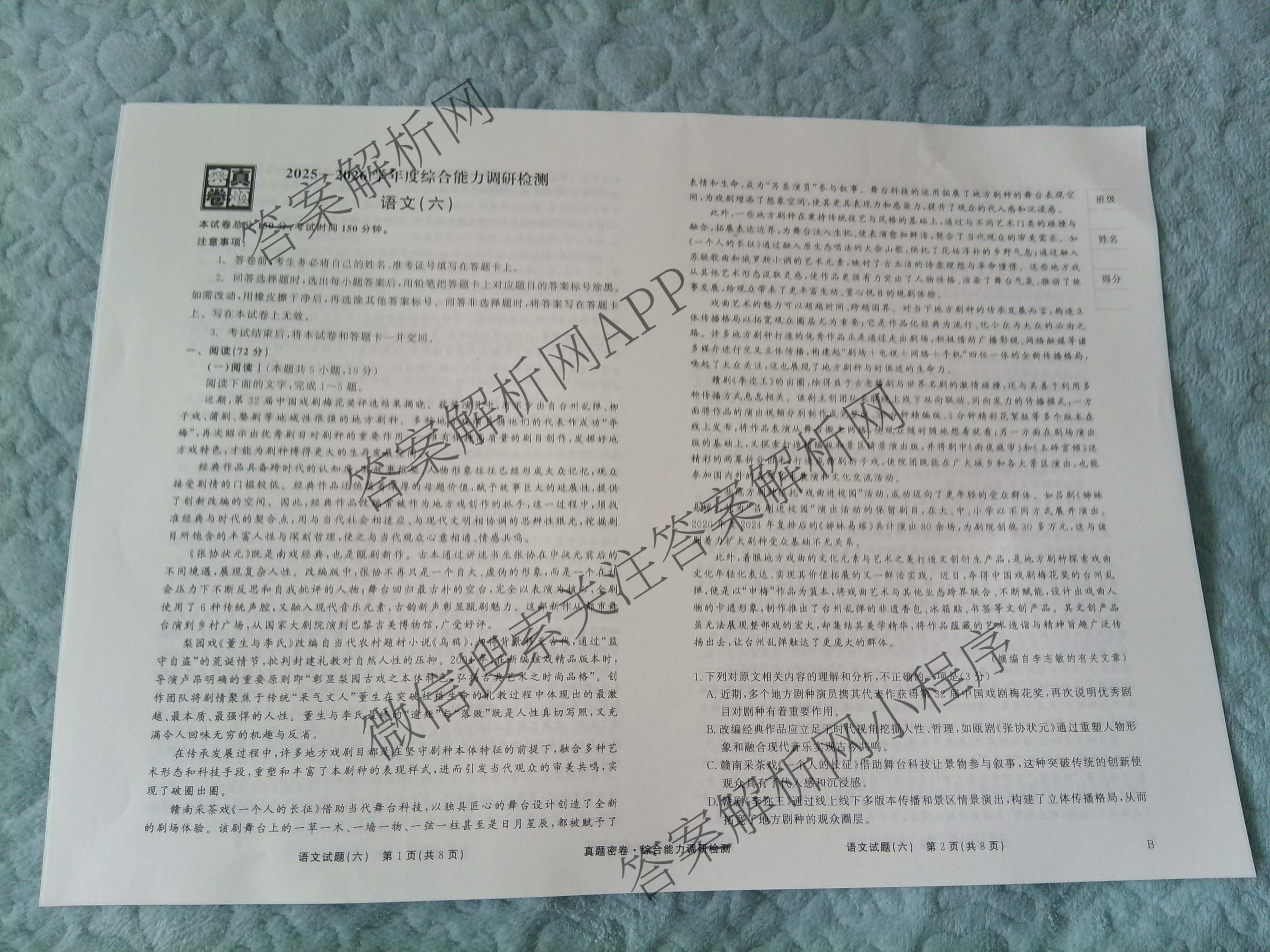 衡水真题密卷·2025-2026学年度综合能力调研检测(六)6语文(B)试题,目前衡水金卷先享题答案网已经汇总了衡水真题密卷·2025-2026学年度综合能力调研检测(六)6语文(B)试题的各科答案和试卷,获取更多真题密卷答案解析,请在关注本站。