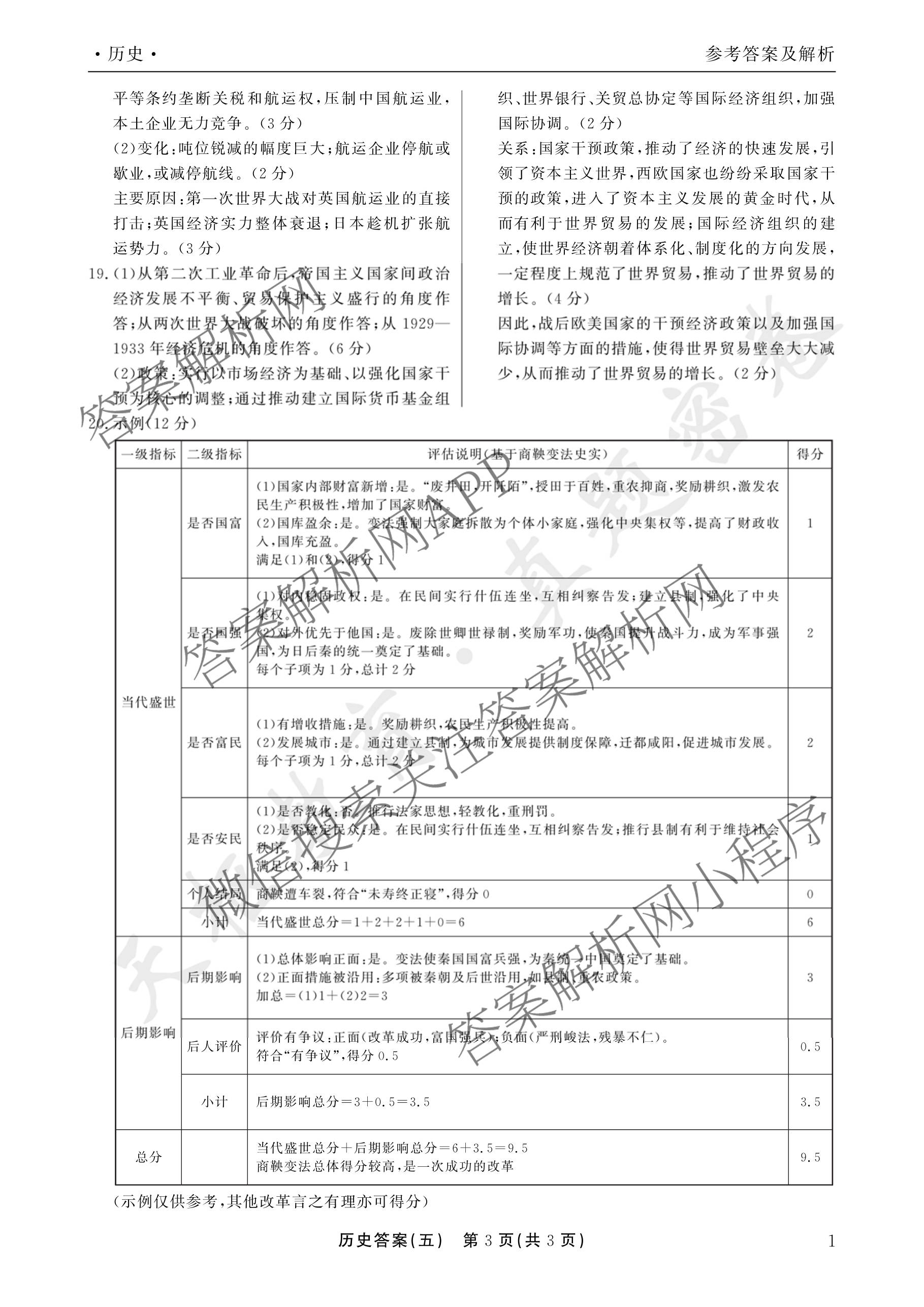 - 2025~2026(高三)衡水真题密卷·学年度综合能力调研检测(五)5历史(1)答案