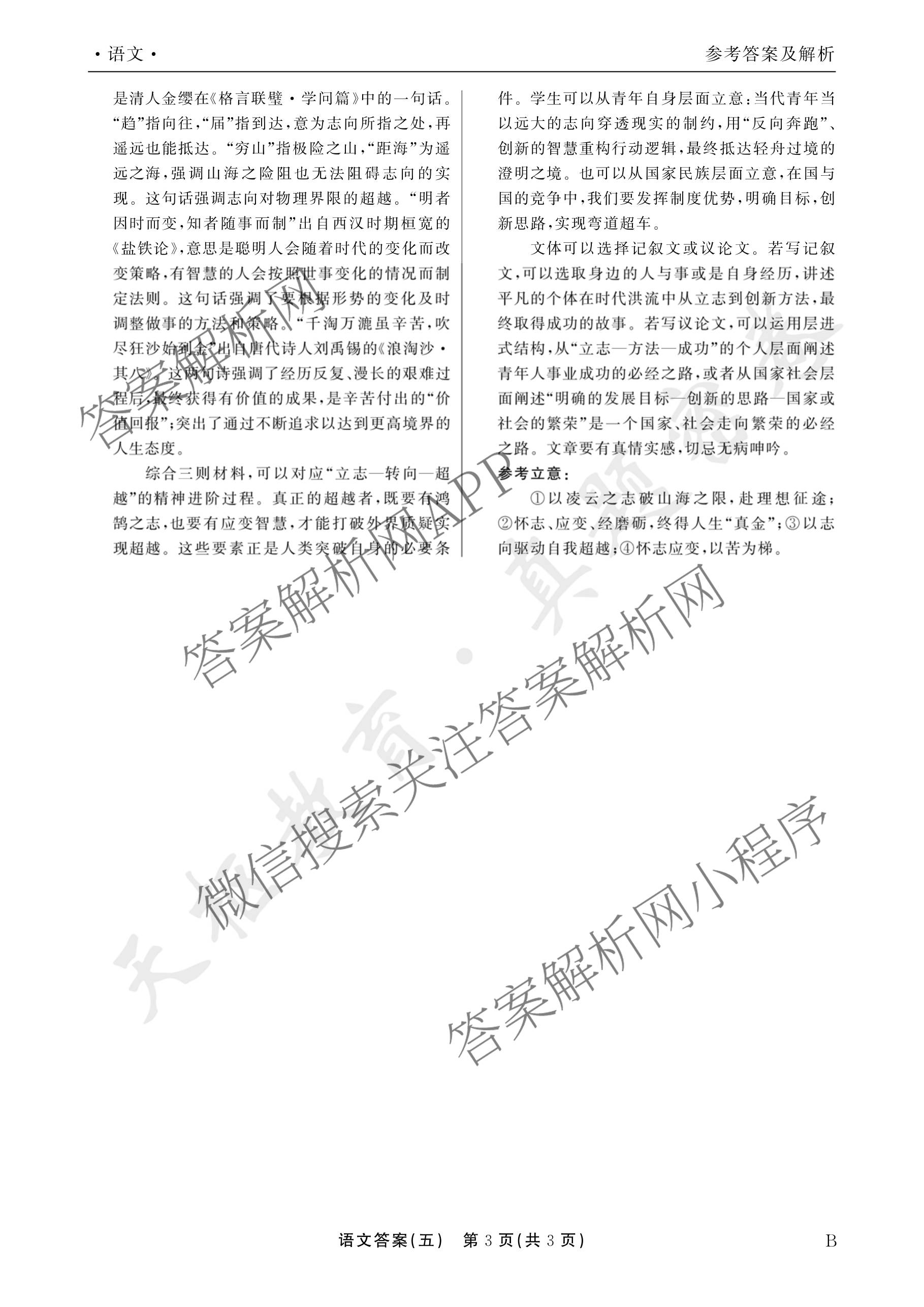 衡水(真题密卷)·2025~2026学年度综合能力调研检测(五)5语文(B)答案