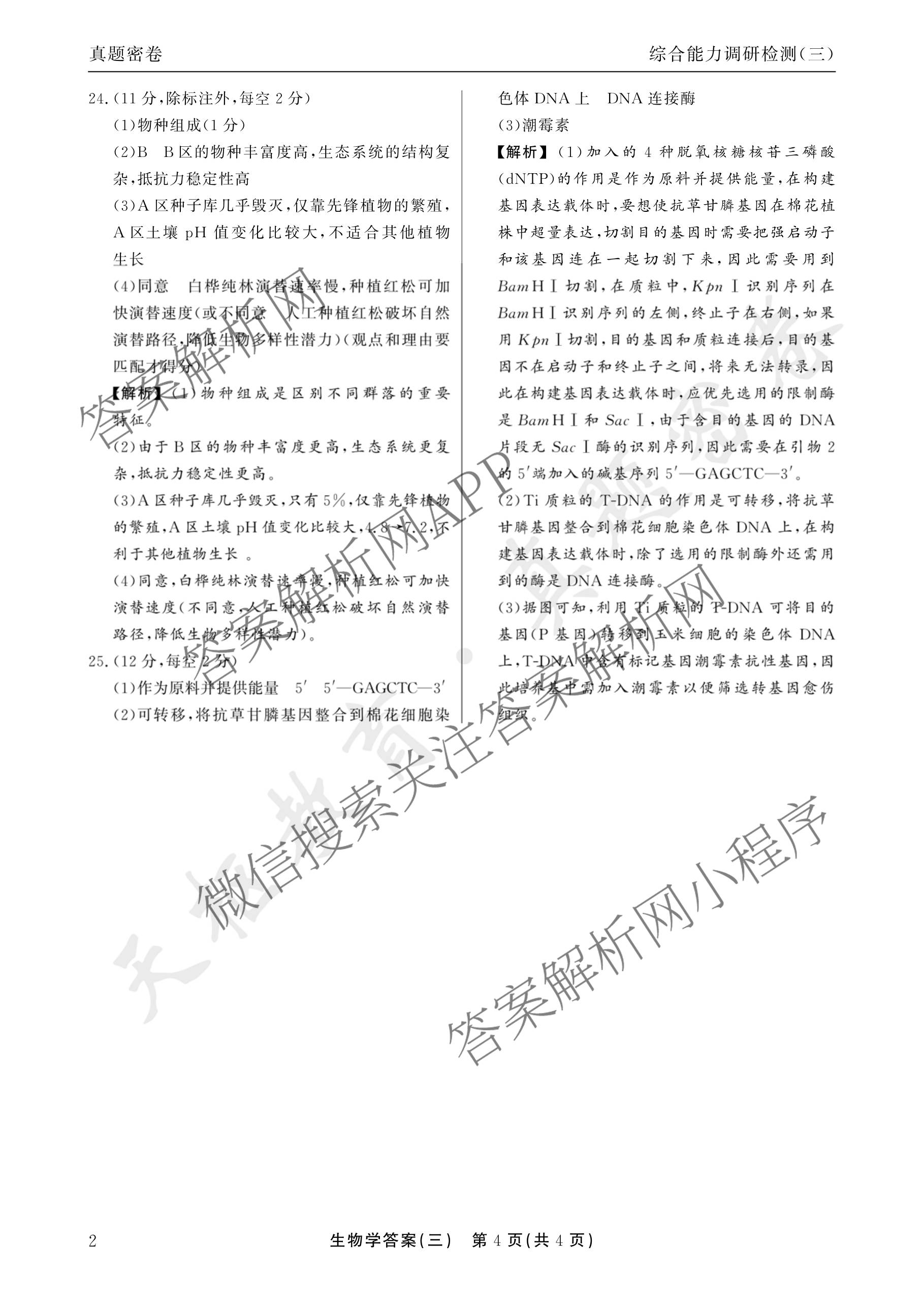 - [高三]衡水(真题密卷)2025-2026学年度综合能力调研检测(三)3生物(1)答案