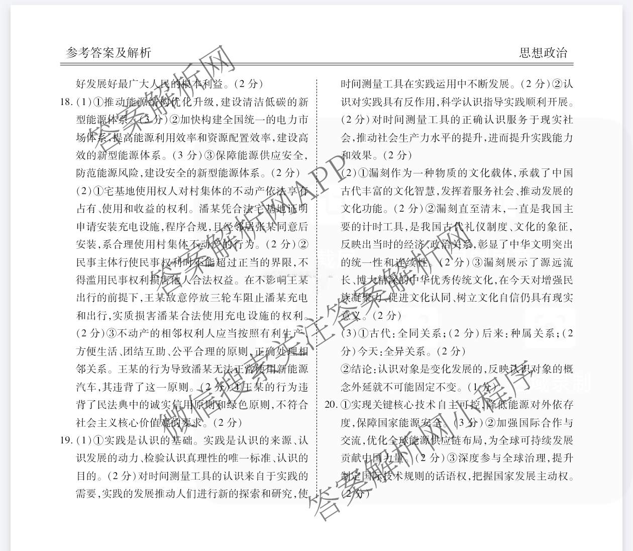 - [衡水金卷先享题]·2026届(高三)年级1月份适应性测试政治答案