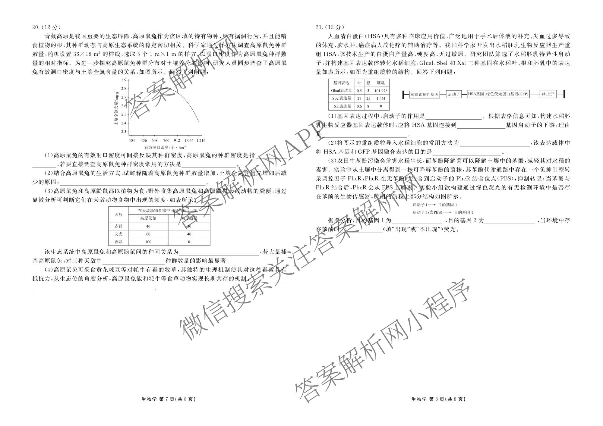 - (衡水金卷先享题)·2026届[高三]年级1月份适应性测试生物答案