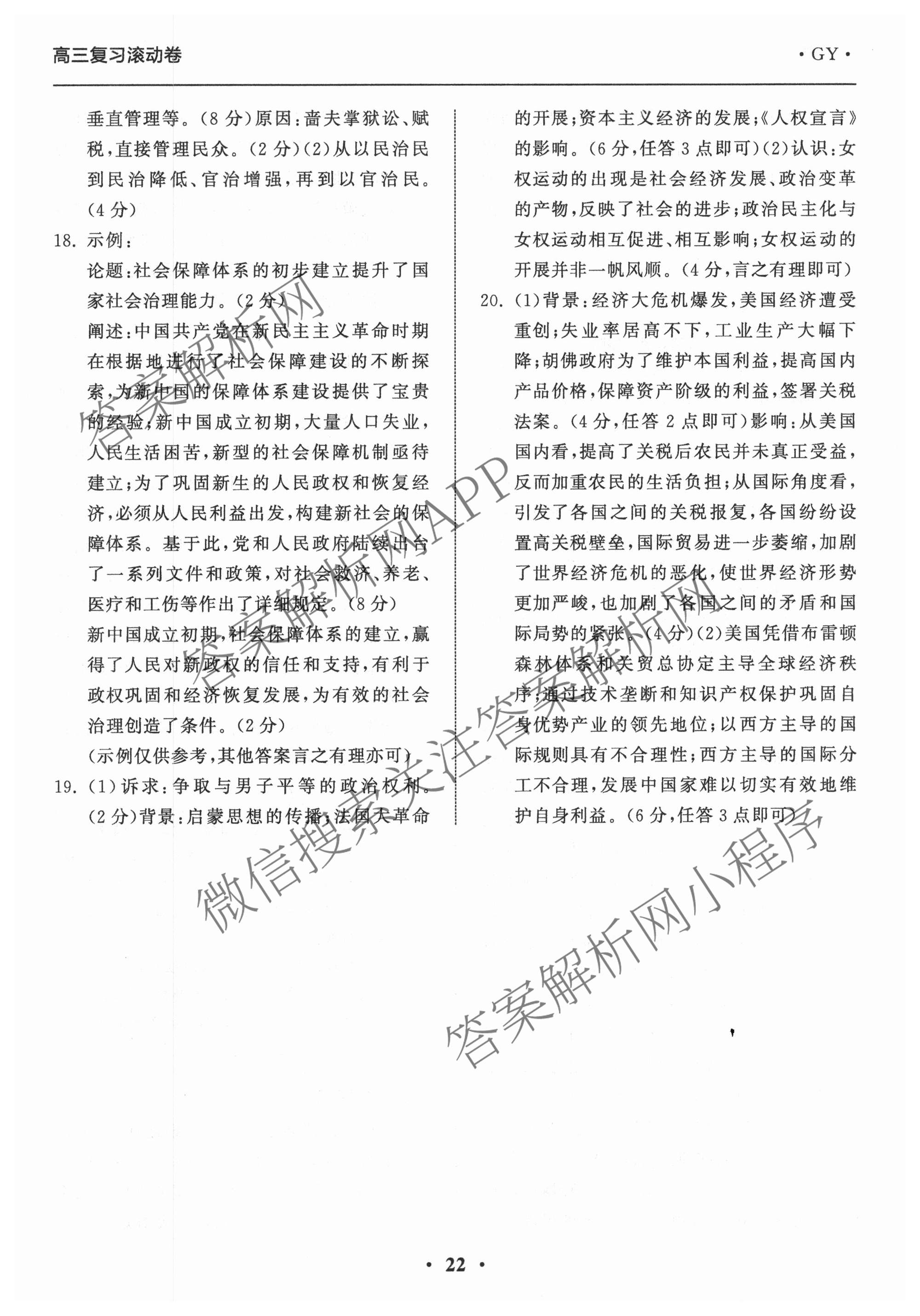 2025-2026高三(衡中同卷)学年度复习滚动卷(六)6历史(GY)答案