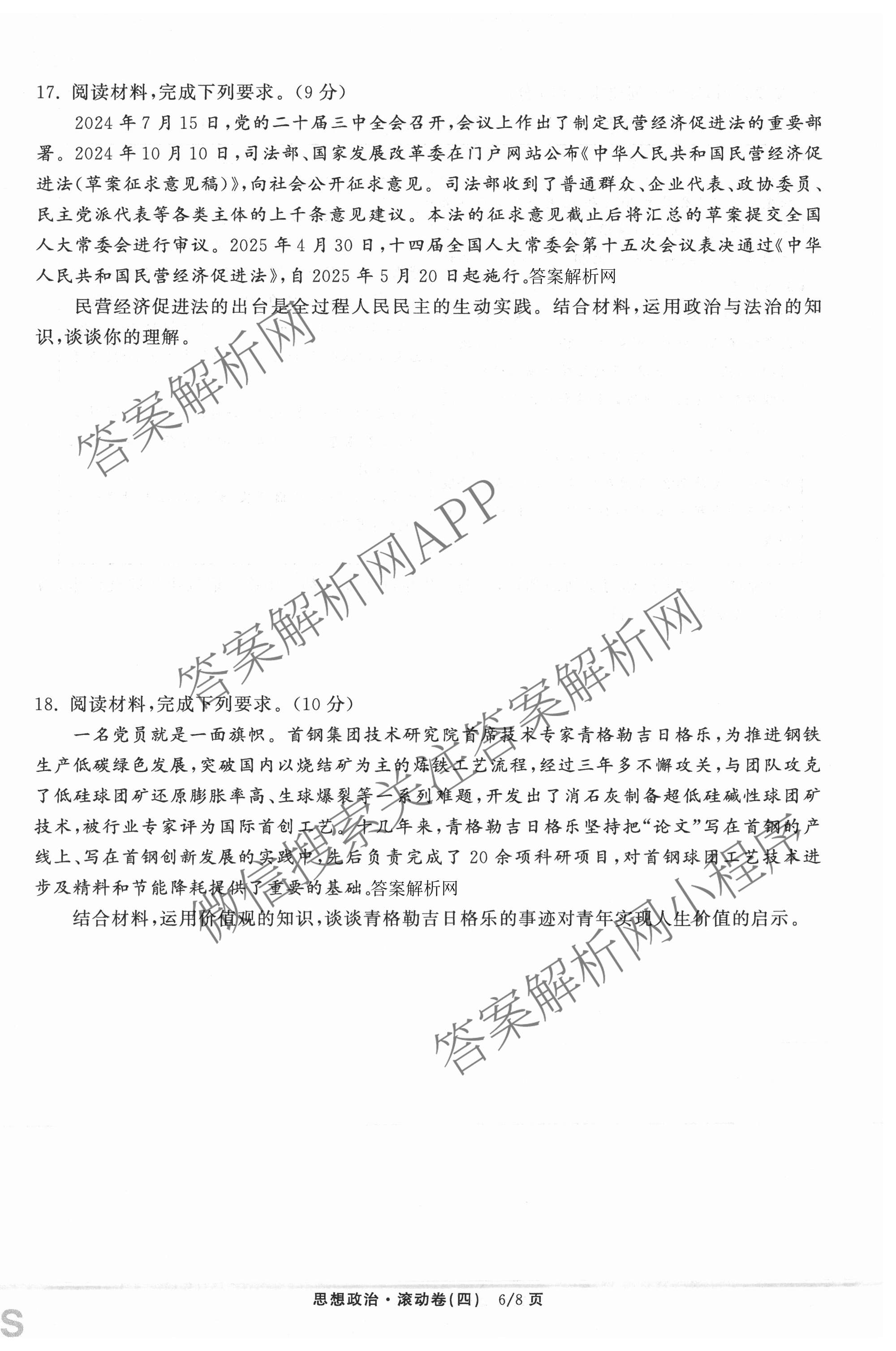 - 2025-2026(衡中同卷)·学年度(高三)复习滚动卷(四)4政治试题