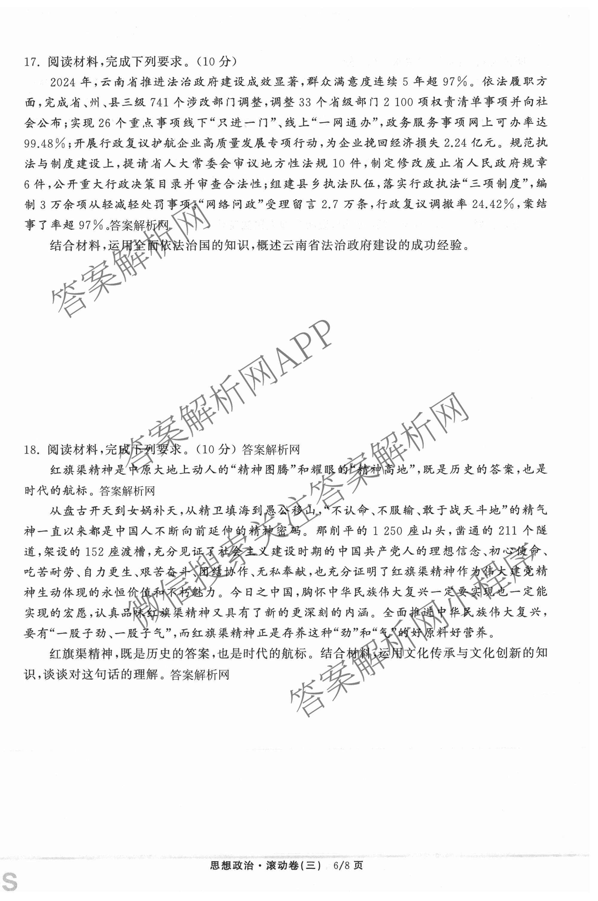 - 高三[衡中同卷]2025~2026学年度复习滚动卷(三)3政治(GS)试题
