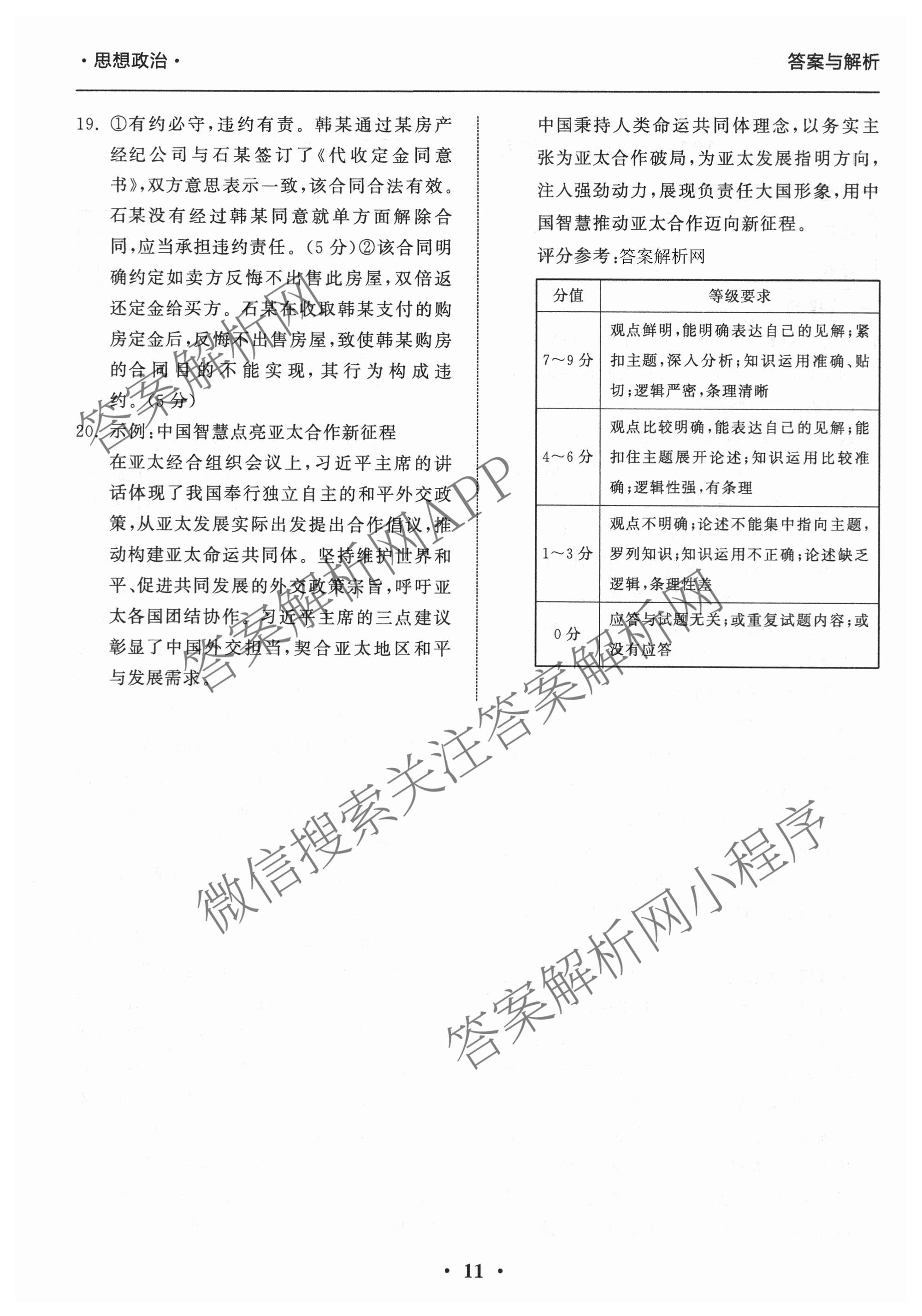 - (衡中同卷)·2025-2026学年度[高三]复习滚动卷(三)3政治(WY)答案