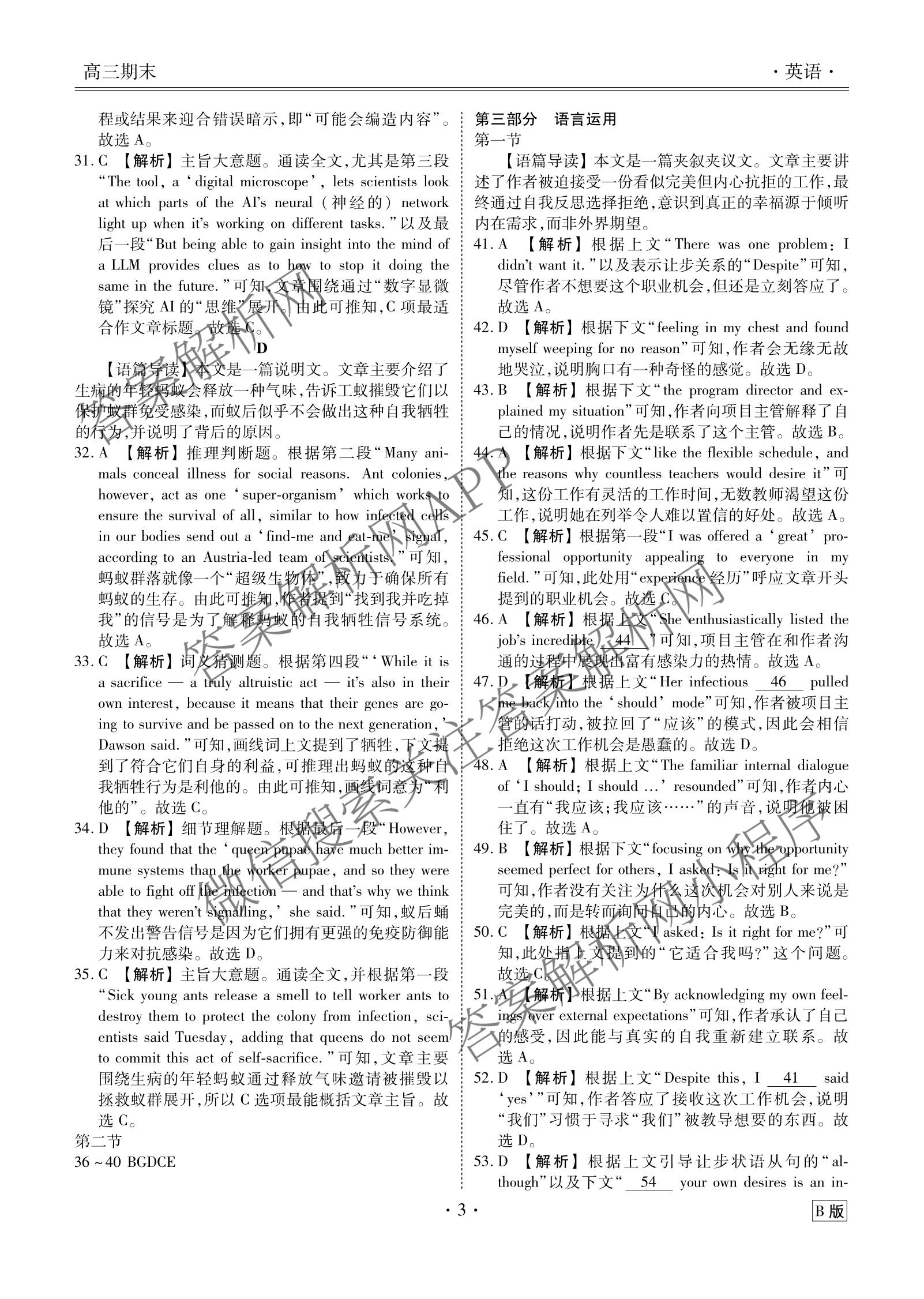 2025~2026(衡水金卷先享题)·月考卷·学年度上学期(高三)年级期末考试英语(B版)答案