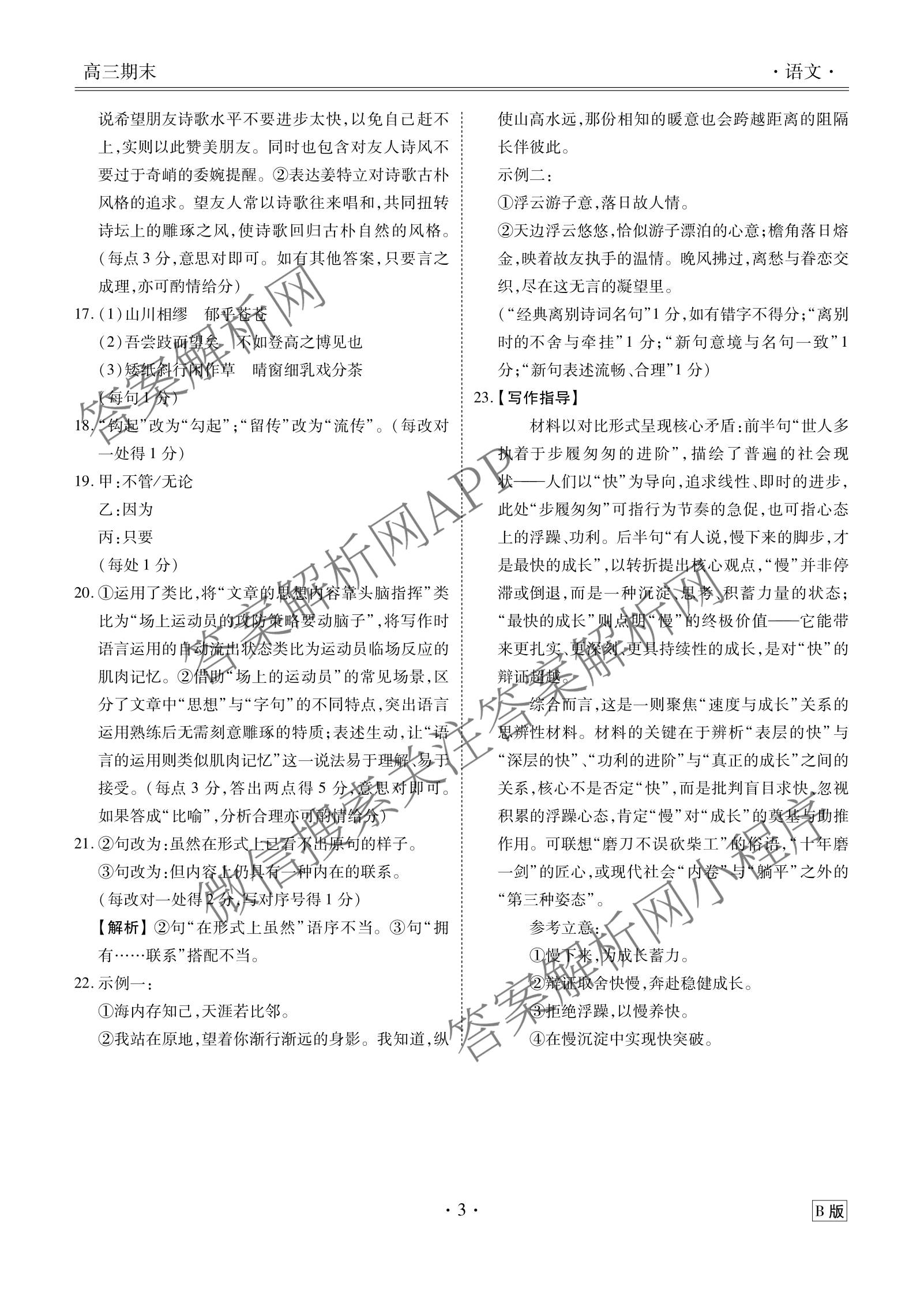 衡水金卷先享题·月考卷·2025-2026学年度上学期高三年级期末考试语文(B版)答案,目前衡水金卷先享题答案网已经汇总了衡水金卷先享题·月考卷·2025-2026学年度上学期高三年级期末考试语文(B版)答案的各科答案和试卷,获取更多衡水金卷先享题答案解析,请在关注本站。