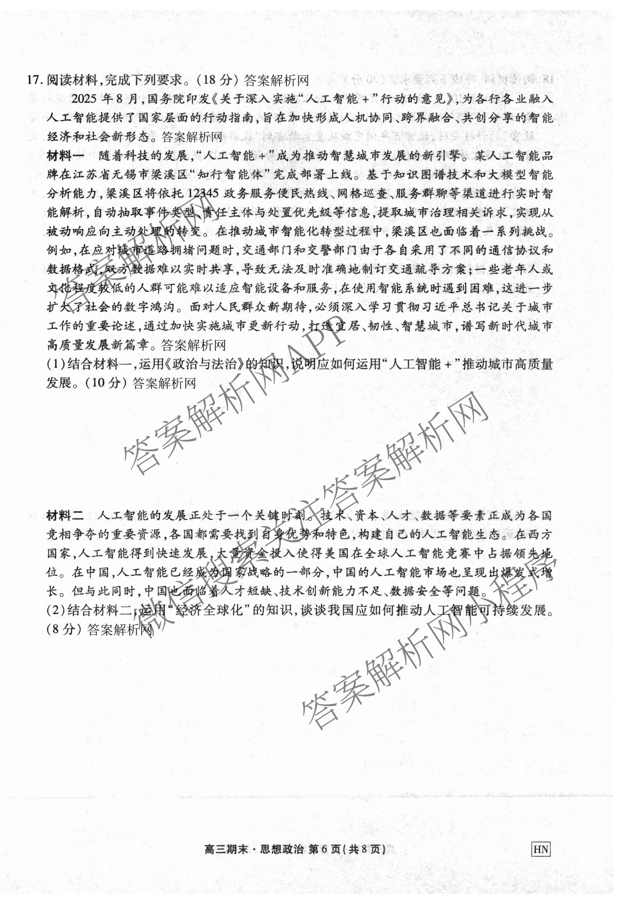 衡水金卷先享题·月考卷·2025-2026学年度上学期高三年级期末考试政治(HN)试题,目前衡水金卷先享题答案网已经汇总了衡水金卷先享题·月考卷·2025-2026学年度上学期高三年级期末考试政治(HN)试题的各科答案和试卷,获取更多衡水金卷先享题答案解析,请在关注本站。