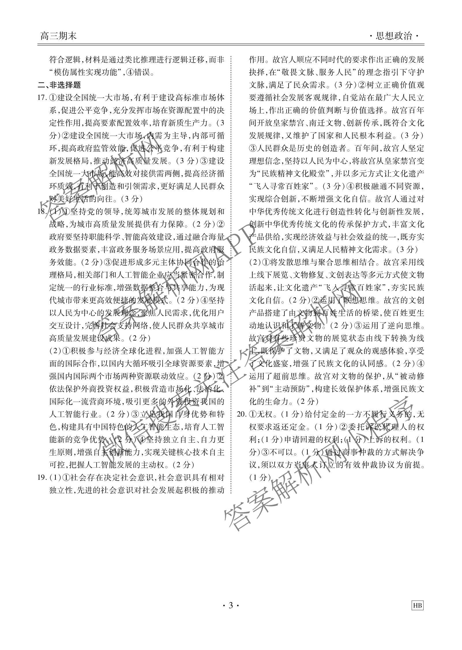 - 2025-2026[衡水金卷先享题]月考卷学年度上学期(高三)年级期末考试政治(HB)答案