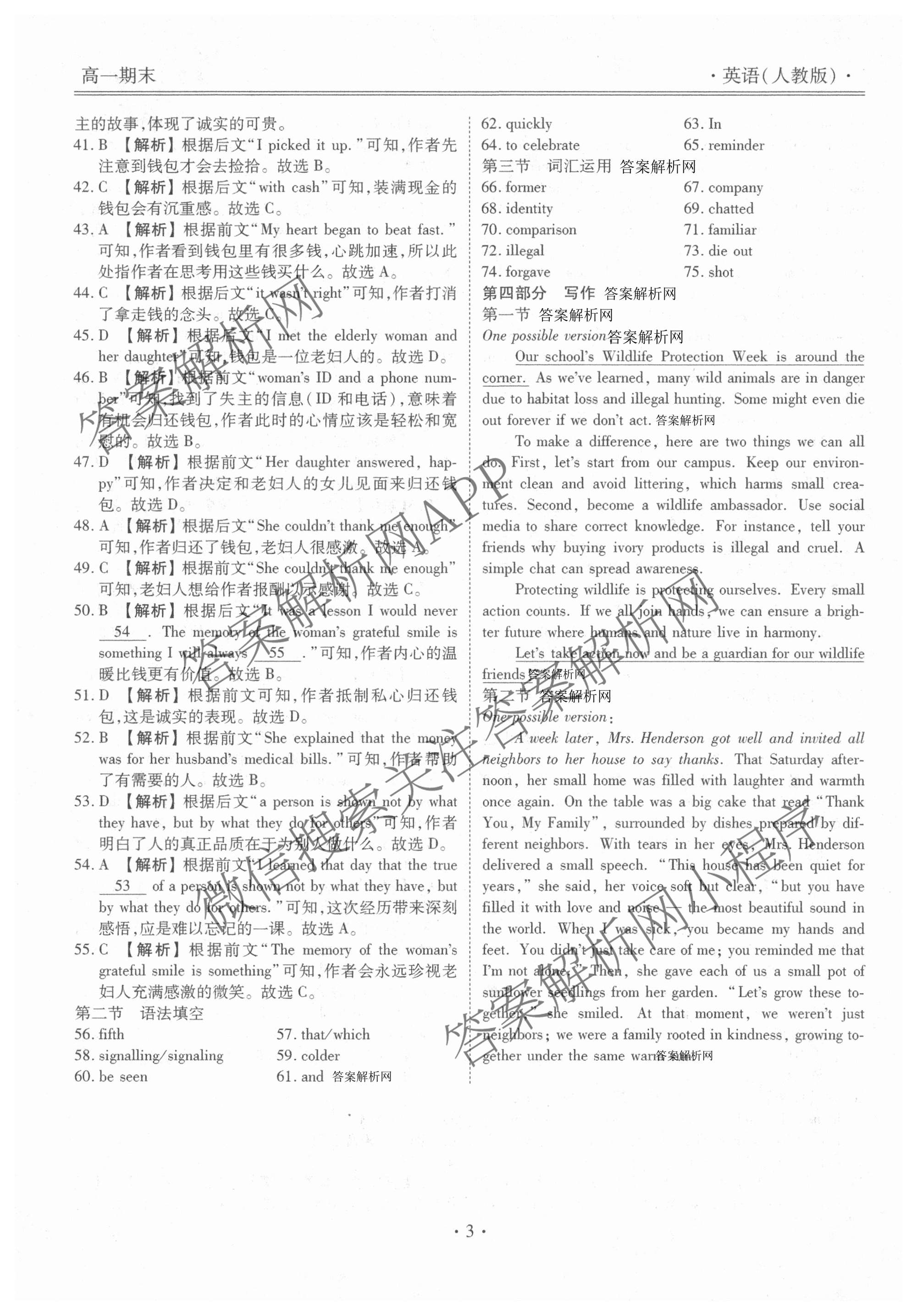 [衡水金卷先享题]·月考卷2025~2026学年度上学期[高一]年级期末考试英语(人教版)答案