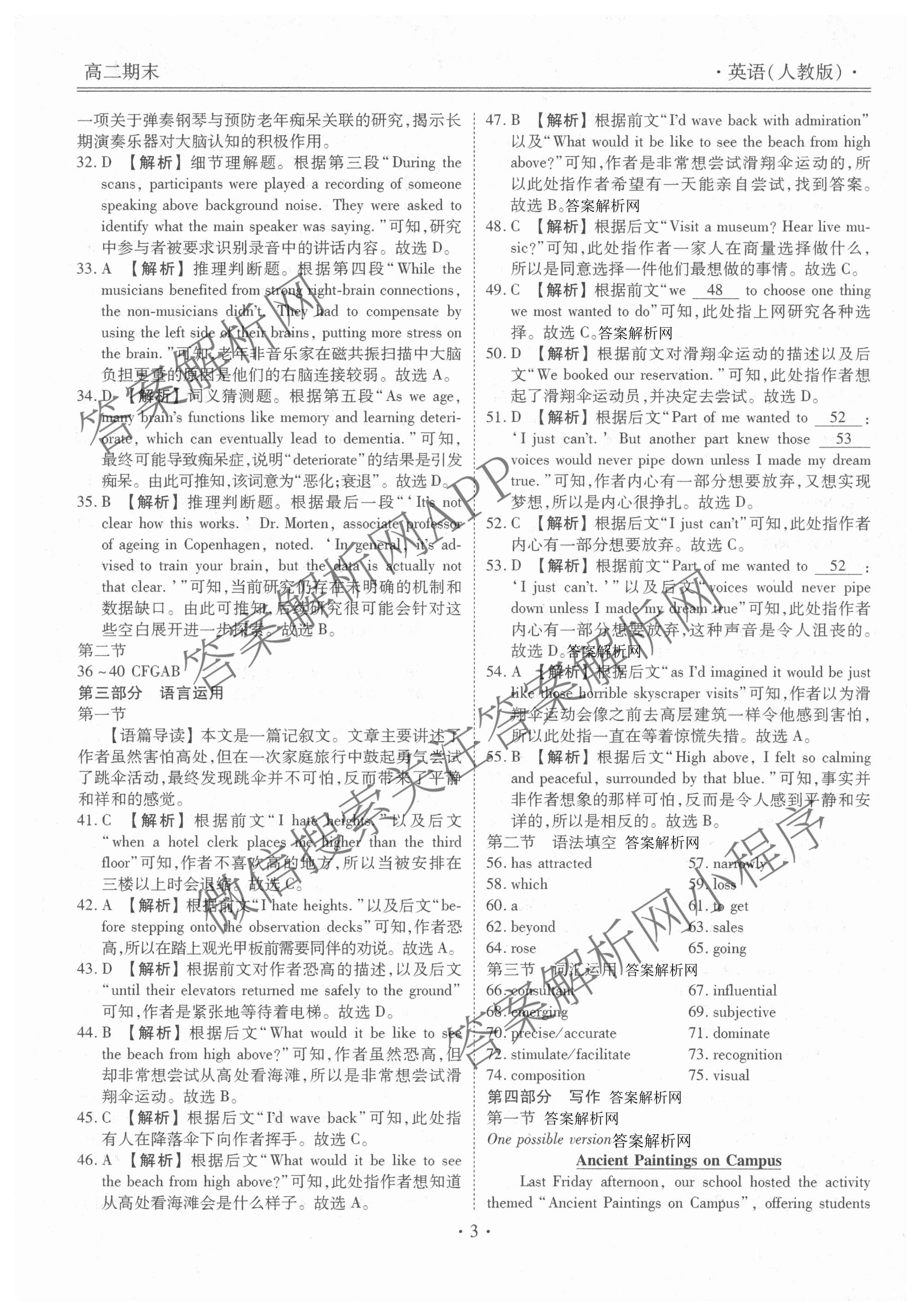 - [高二](衡水金卷先享题)·月考卷2025~2026学年度上学期年级期末考试英语(人教版)答案
