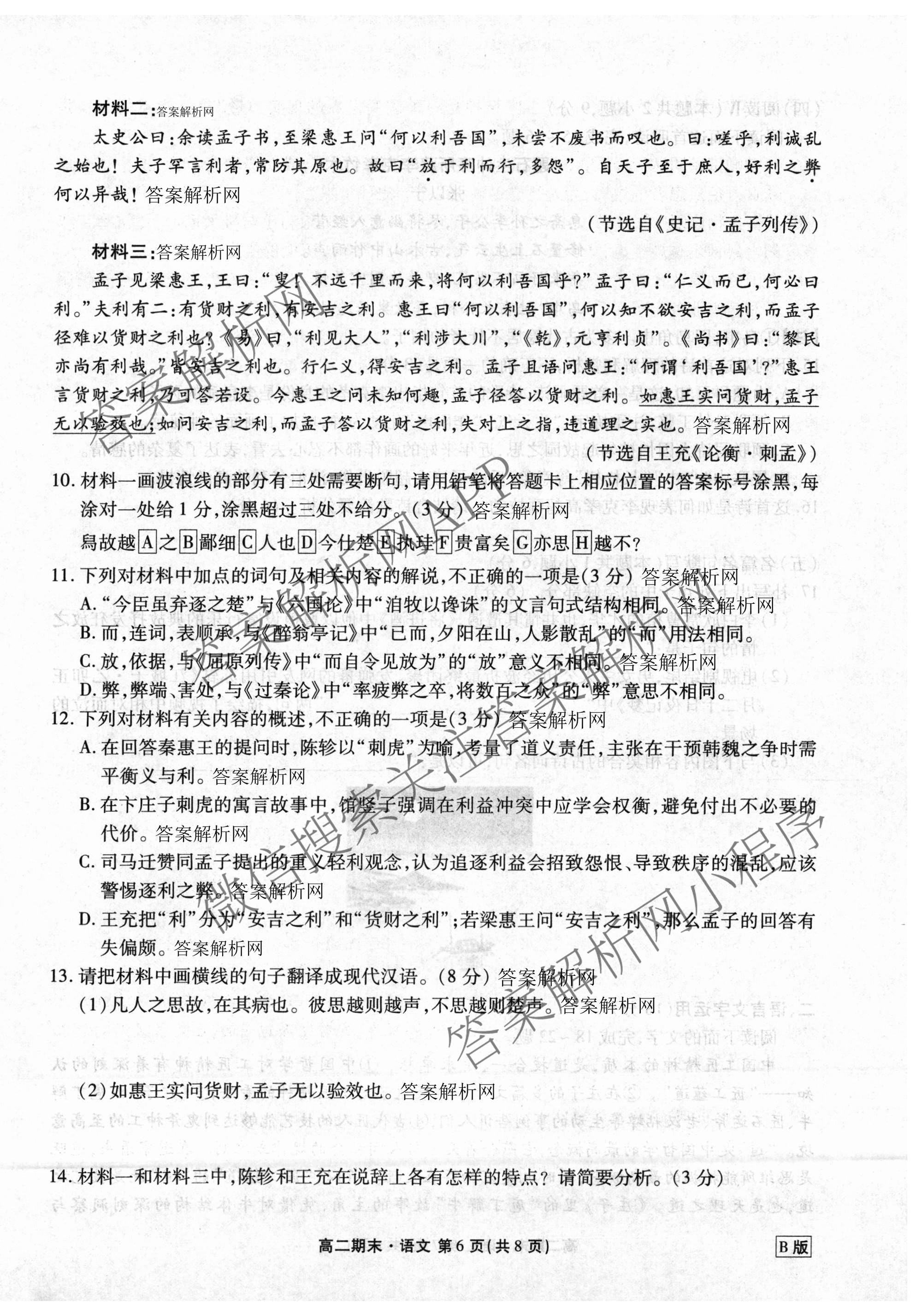 - (衡水金卷先享题)月考卷2025~2026学年度上学期(高二)年级期末考试语文(B版)答案