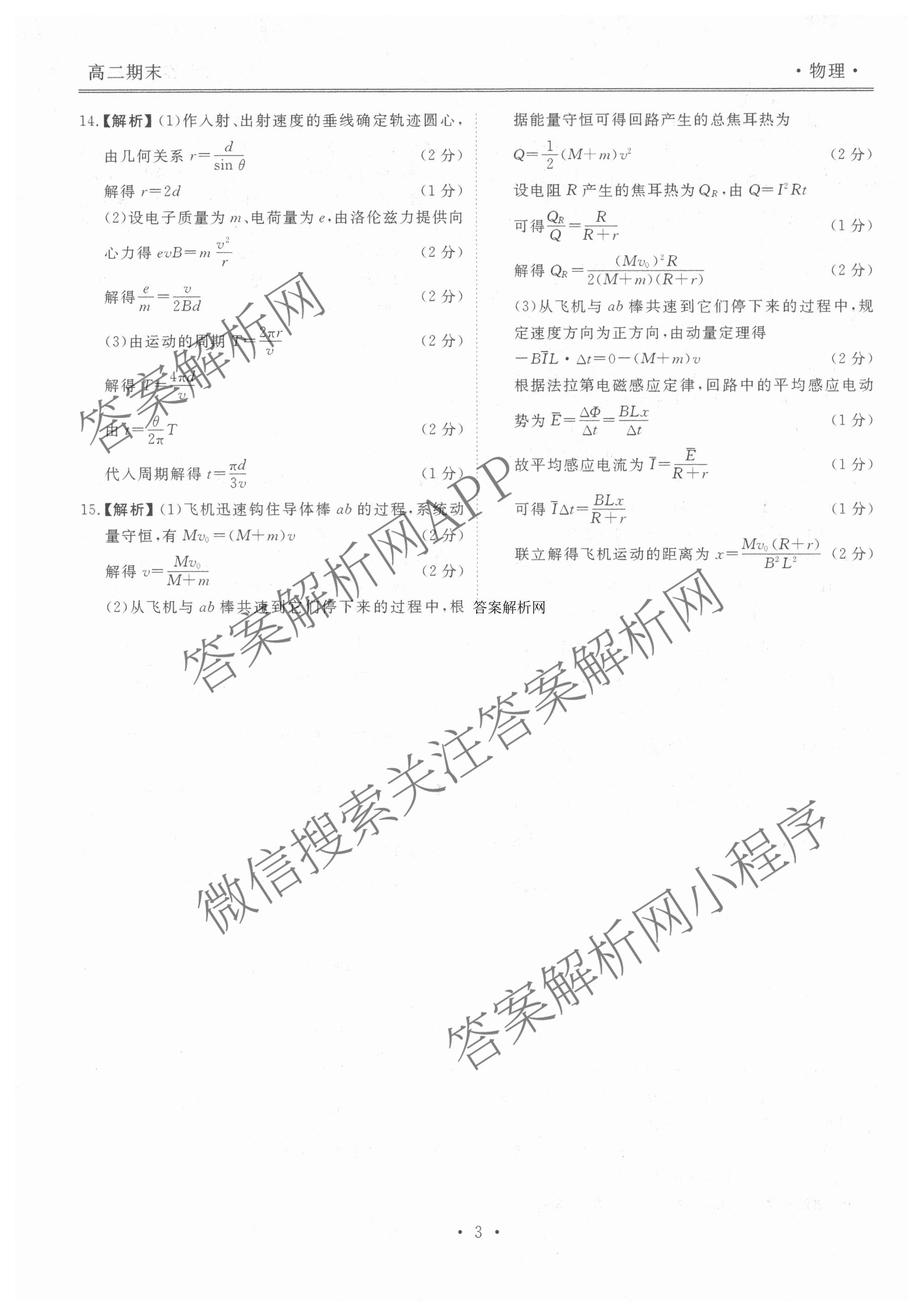 - 2025~2026衡水金卷先享题·月考卷学年度上学期[高二]年级期末考试物理答案