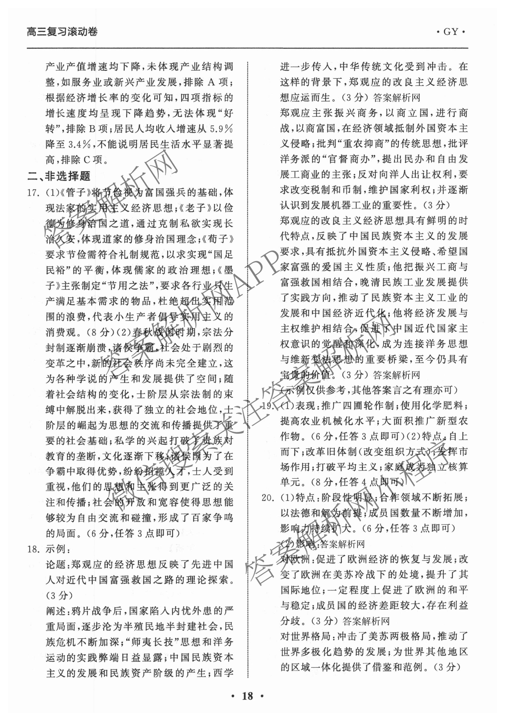 - 2025~2026[衡中同卷]·学年度(高三)复习滚动卷(五)5历史(GY)答案