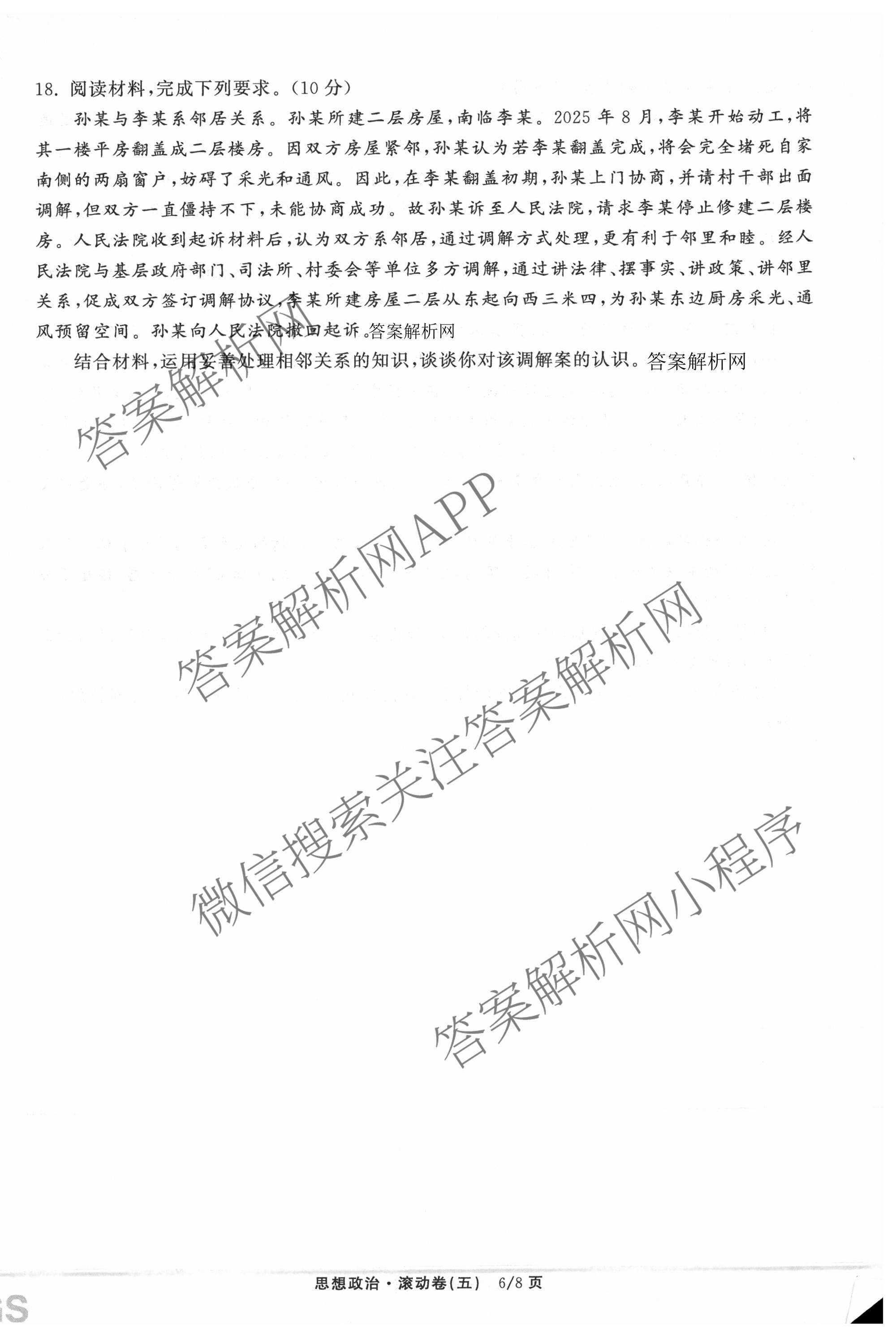 - (高三)[衡中同卷]2025-2026学年度复习滚动卷(五)5政治(WY)试题