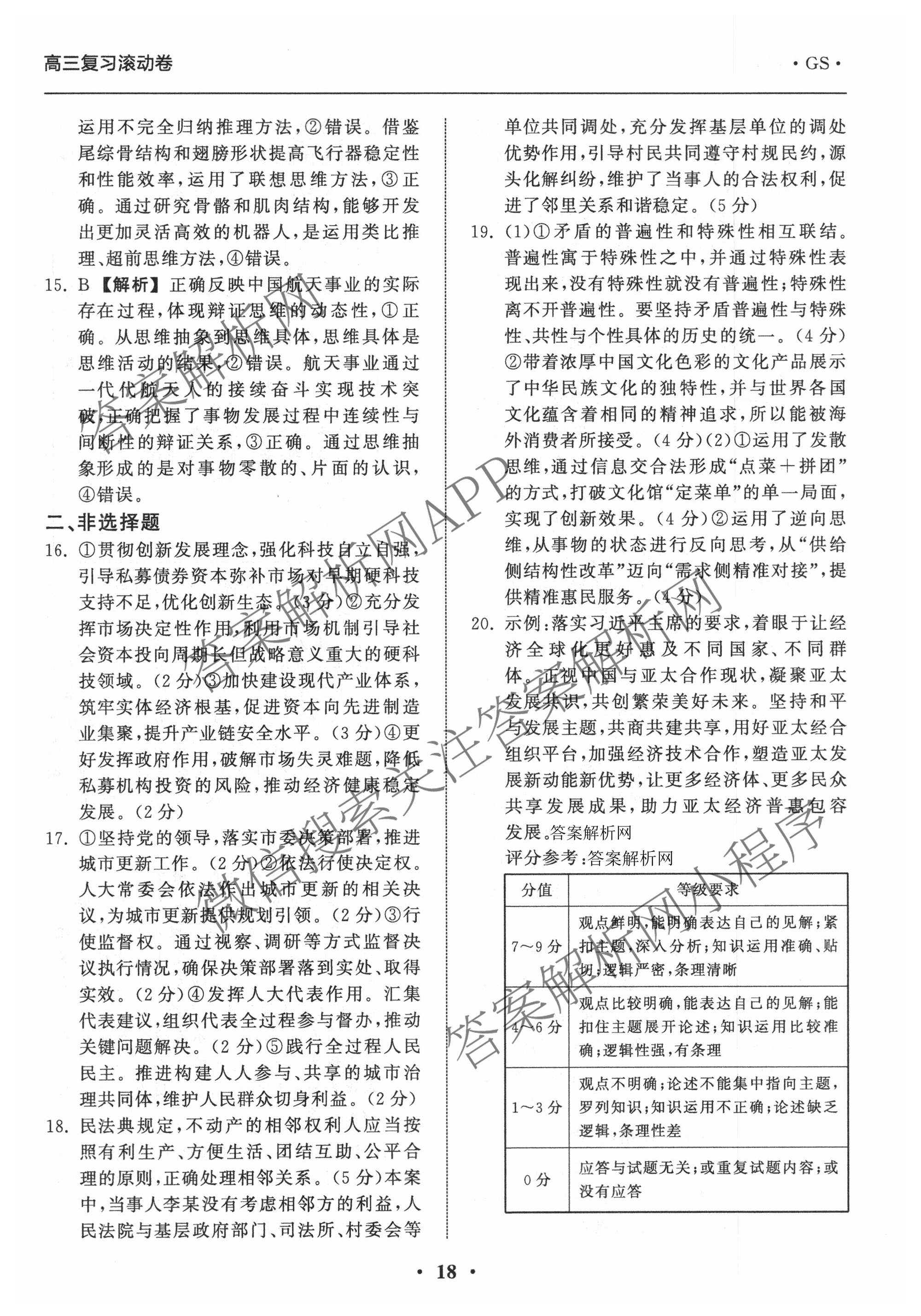 2025~2026[衡中同卷]学年度(高三)复习滚动卷(五)5政治(GS)答案