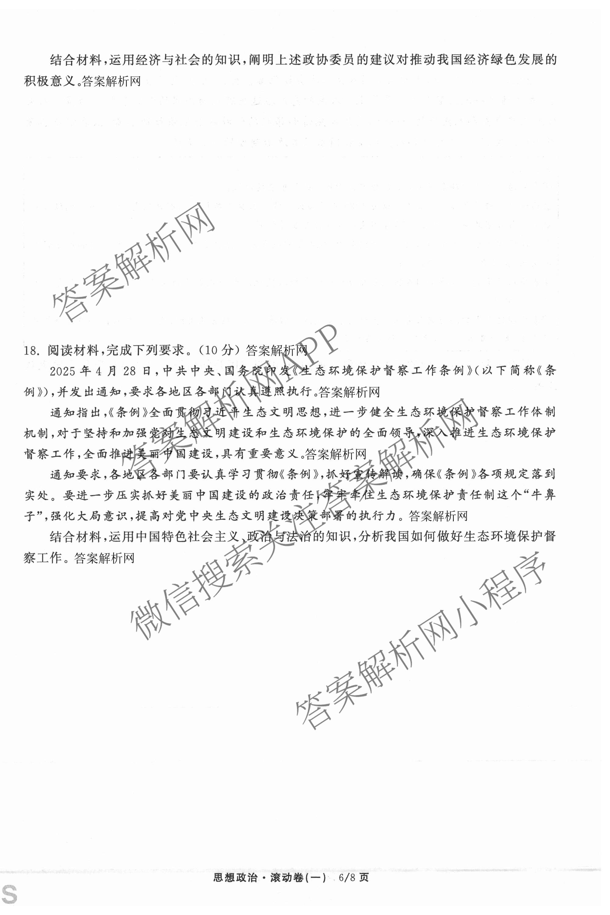 2025~2026高三(衡中同卷)学年度复习滚动卷(一)1政治(GS)试题