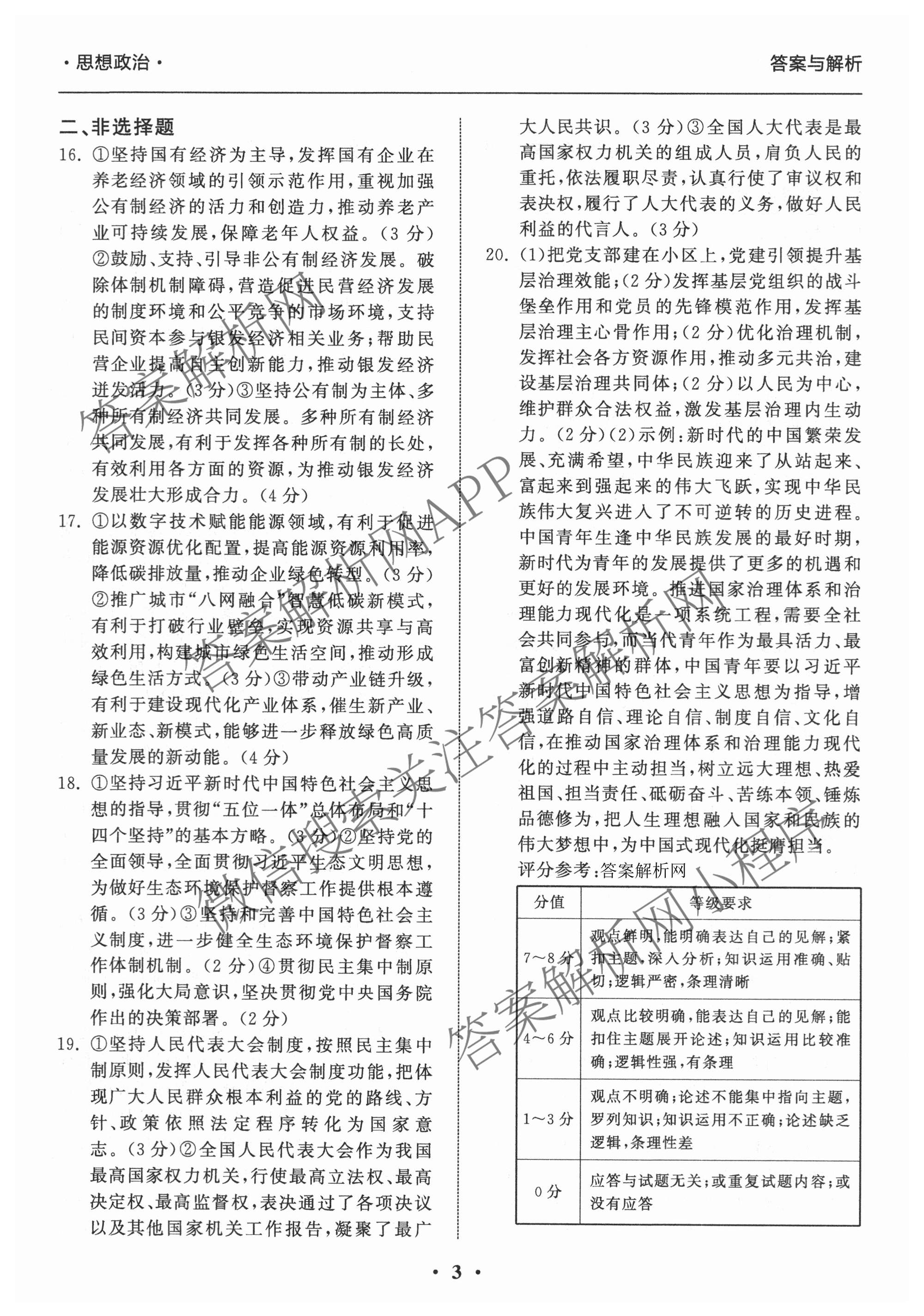 - (高三)[衡中同卷]2025-2026学年度复习滚动卷(一)1政治(WY)答案