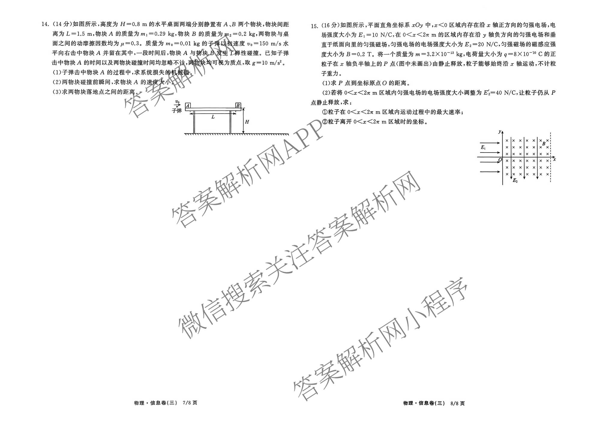 - 天舟高考(衡中同卷)·2026年普通高中学业水平选择性考试模拟信息卷(三)3物理(WY)答案