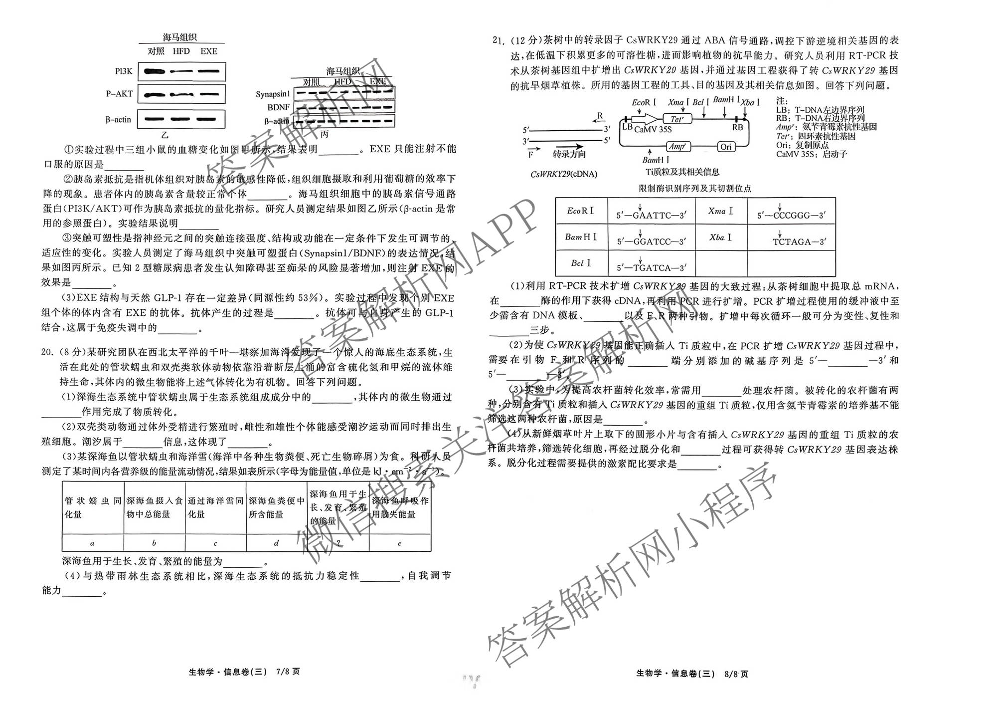 - [高三]天舟高考[衡中同卷]2026年普通高中学业水平选择性考试模拟信息卷(三)3生物(WY)答案