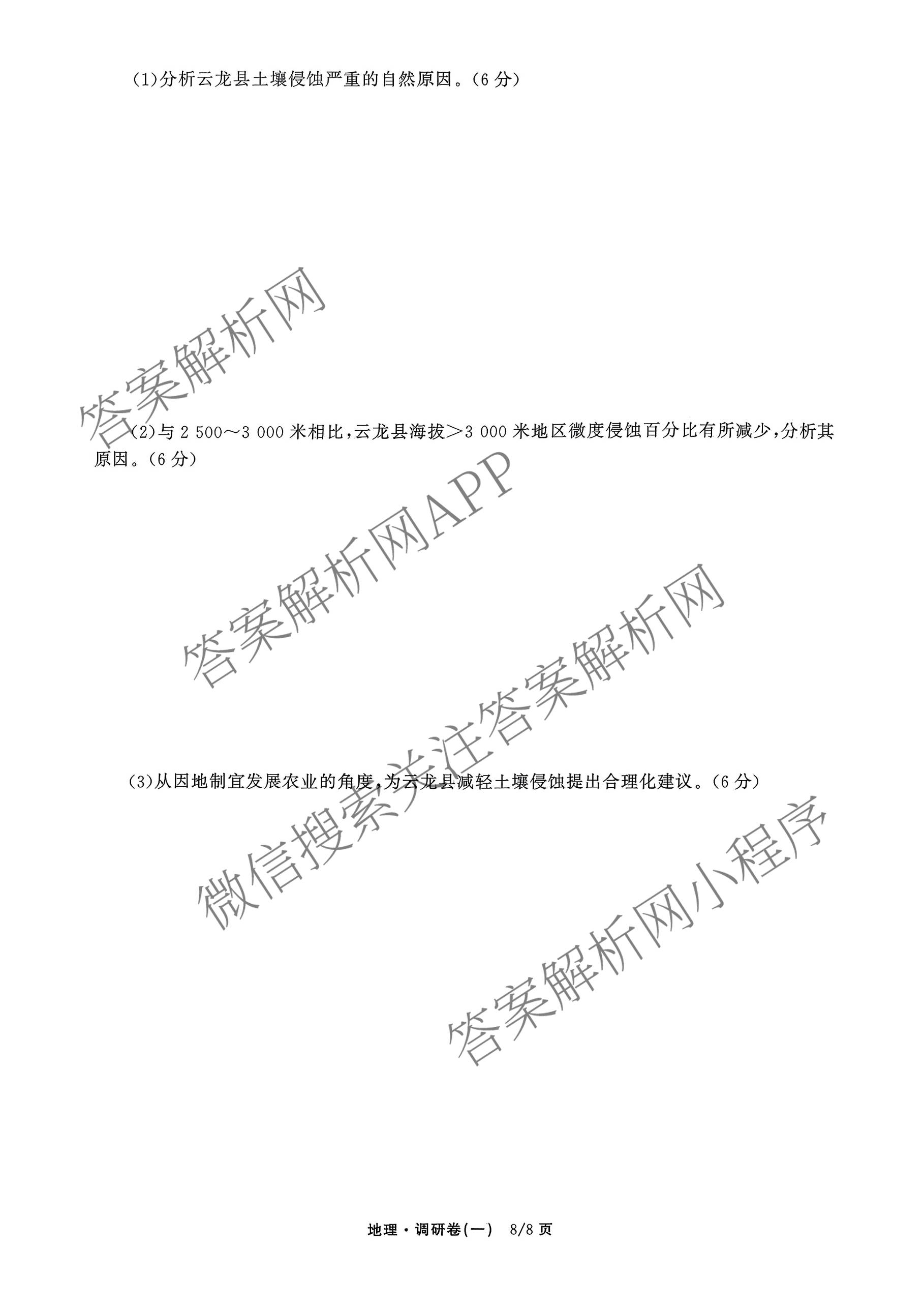 - [高三]天舟高考(衡中同卷)·2026年普通高中学业水平选择性考试模拟调研卷(一)1地理(WY)答案