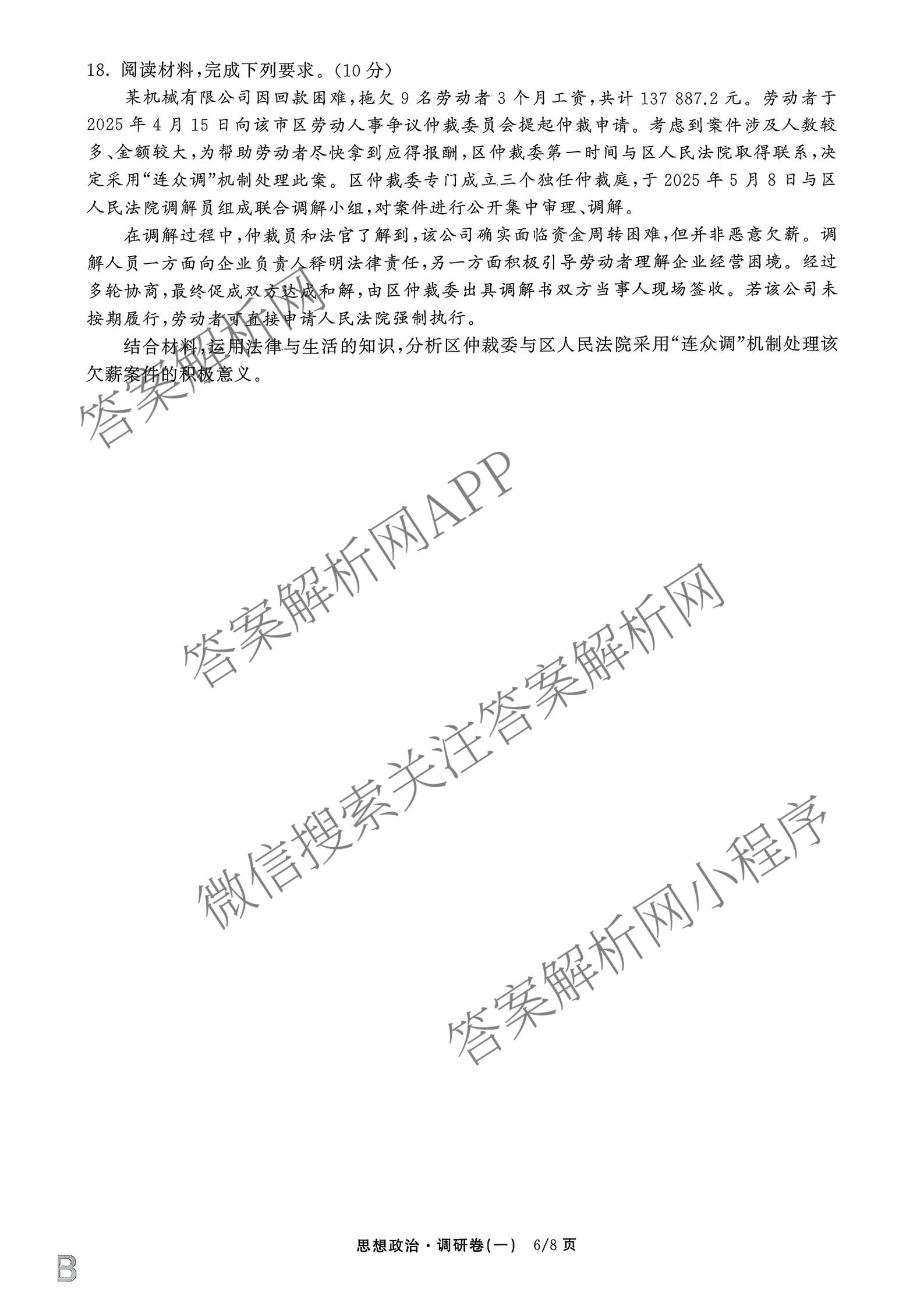 - 高三天舟高考[衡中同卷]2026年普通高中学业水平选择性考试模拟调研卷(一)1政治(DB)试题