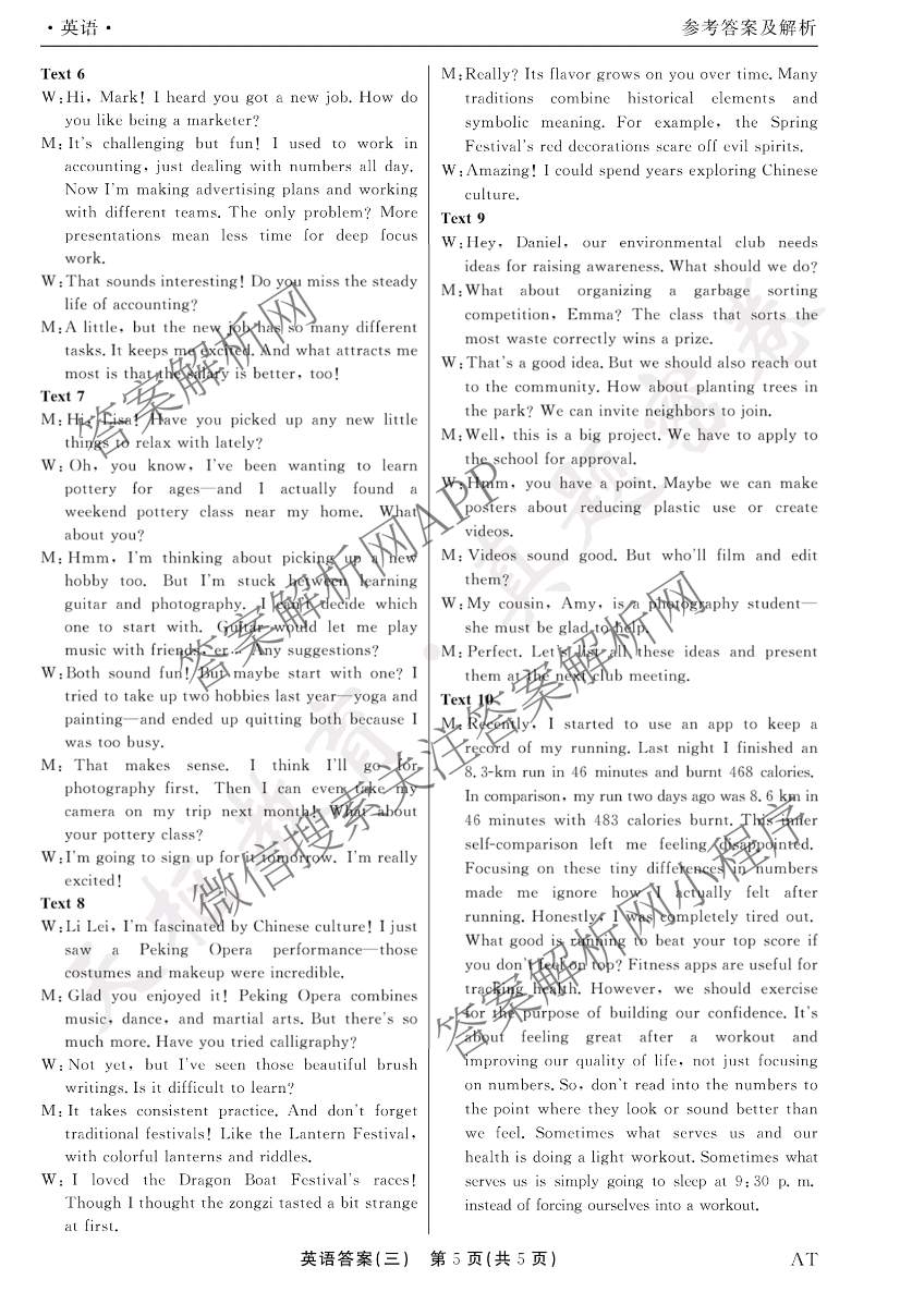 - 2025-2026高三衡水(真题密卷)学年度综合能力调研检测(三)3英语(AT)答案