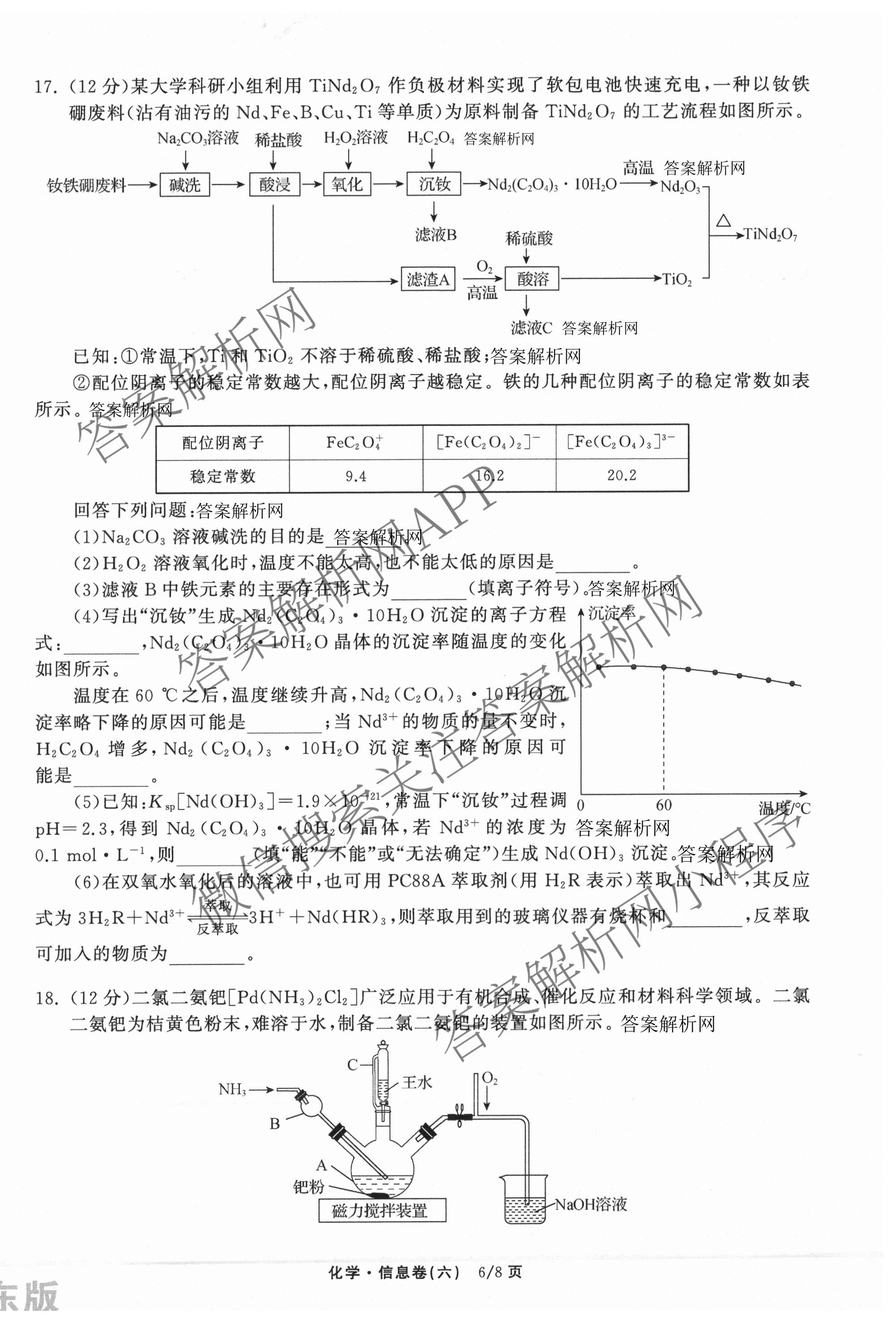 天舟高考衡中同卷·2026年普通高中学业水平选择性考试模拟信息卷(六)6化学(山东版)试题,目前衡水金卷先享题答案网已经汇总了天舟高考衡中同卷·2026年普通高中学业水平选择性考试模拟信息卷(六)6化学(山东版)试题的各科答案和试卷,获取更多衡中同卷答案解析,请在关注本站。