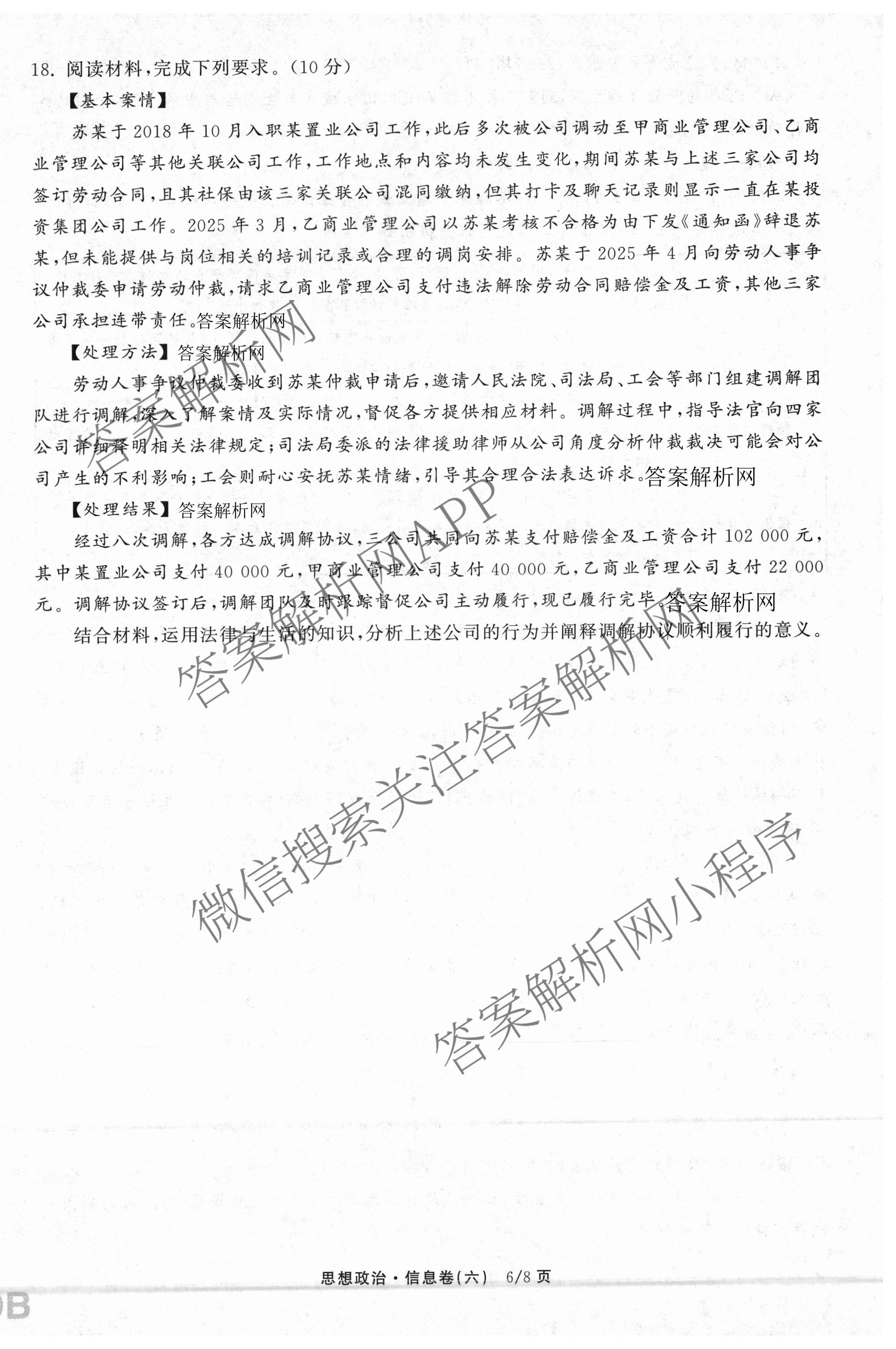 - 高三天舟高考(衡中同卷)·2026年普通高中学业水平选择性考试模拟信息卷(六)6政治(DB)答案