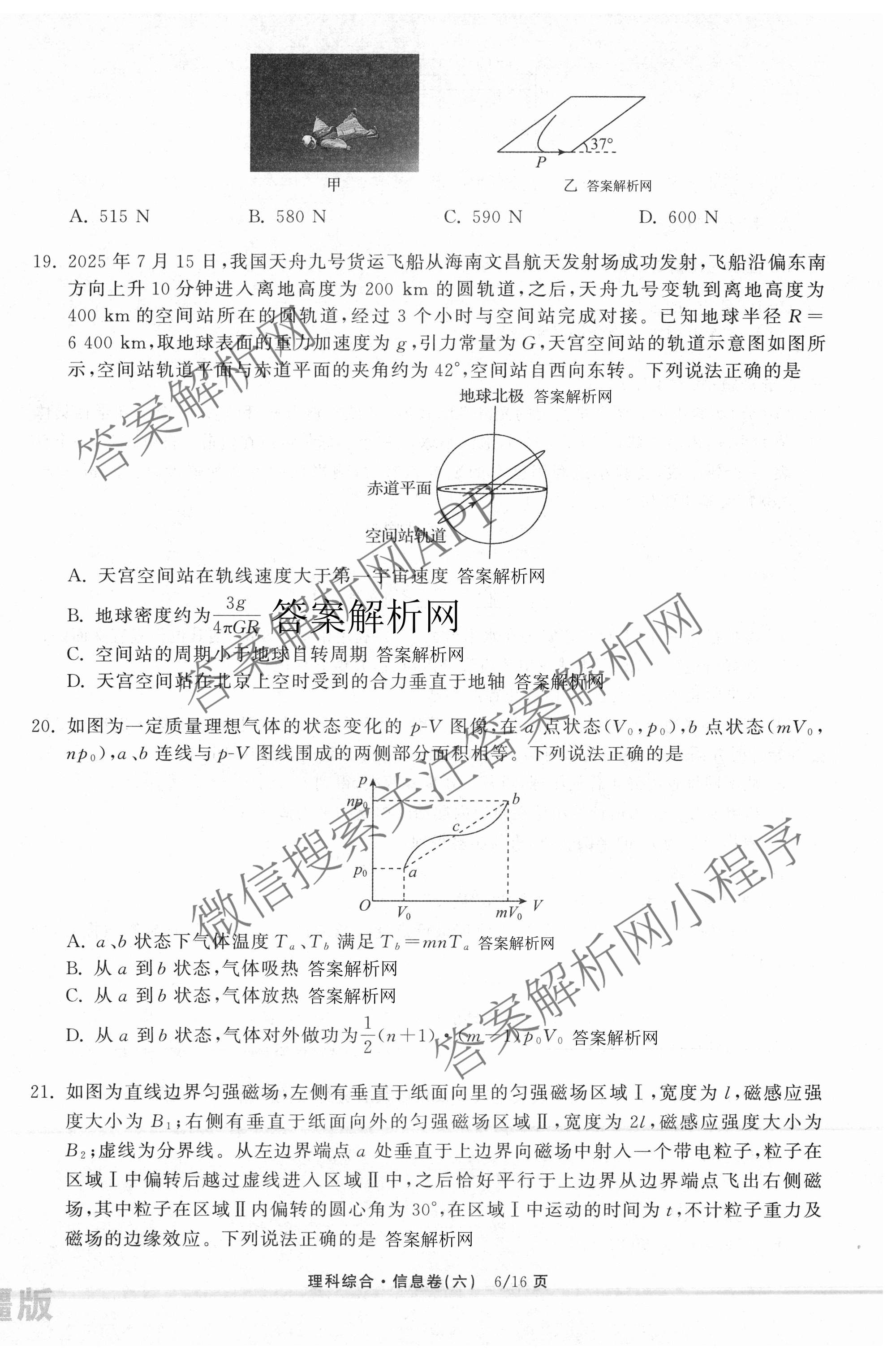 天舟高考衡中同卷·2026年普通高等学校招生全国统一考试模拟信息卷(六)6理综(新疆版)试题,目前衡水金卷先享题答案网已经汇总了天舟高考衡中同卷·2026年普通高等学校招生全国统一考试模拟信息卷(六)6理综(新疆版)试题的各科答案和试卷,获取更多衡中同卷答案解析,请在关注本站。