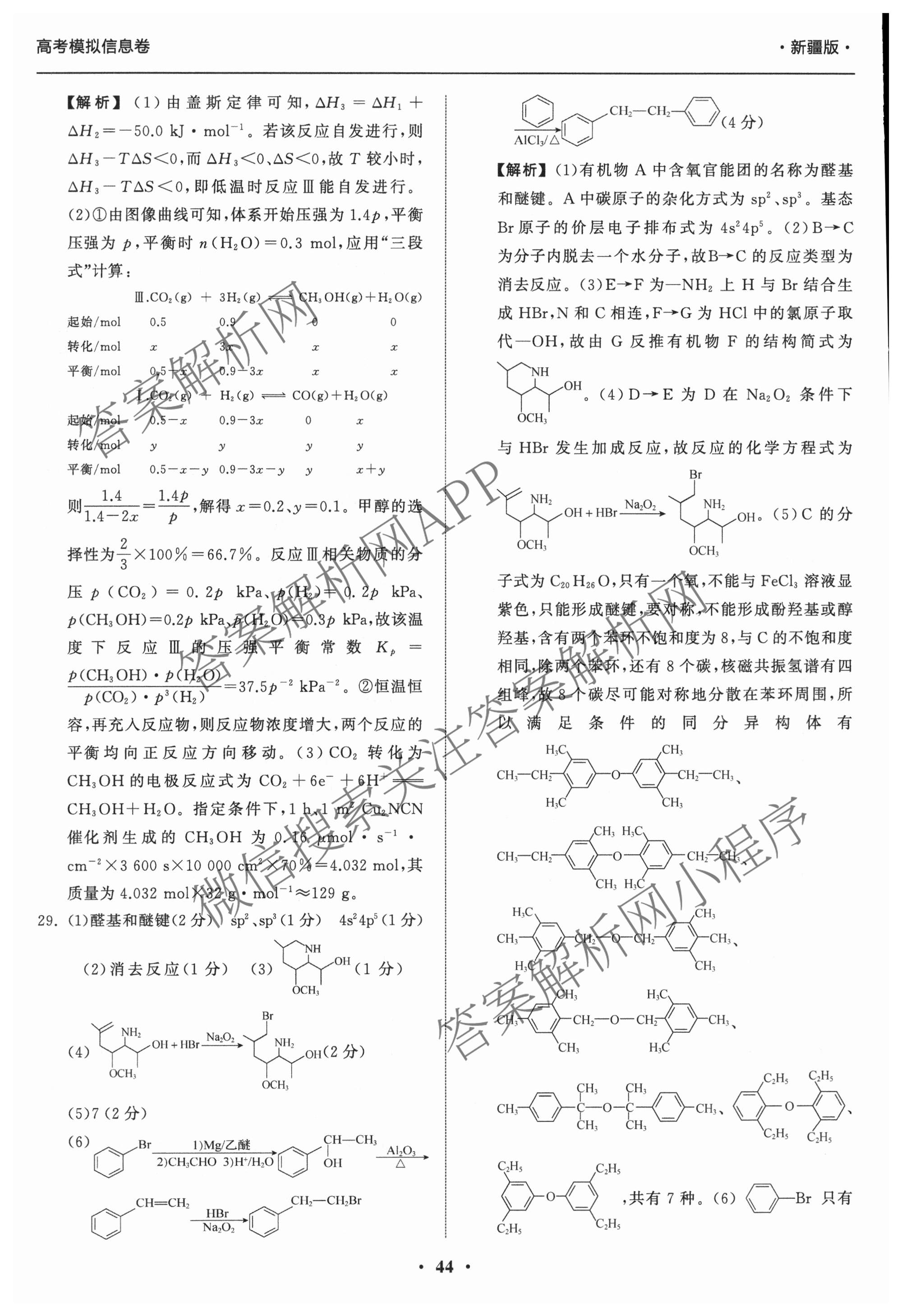 天舟高考[衡中同卷]·2026年普通高等学校招生全国统一考试模拟信息卷(六)6理综(新疆版)答案